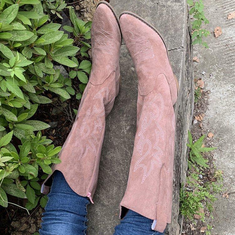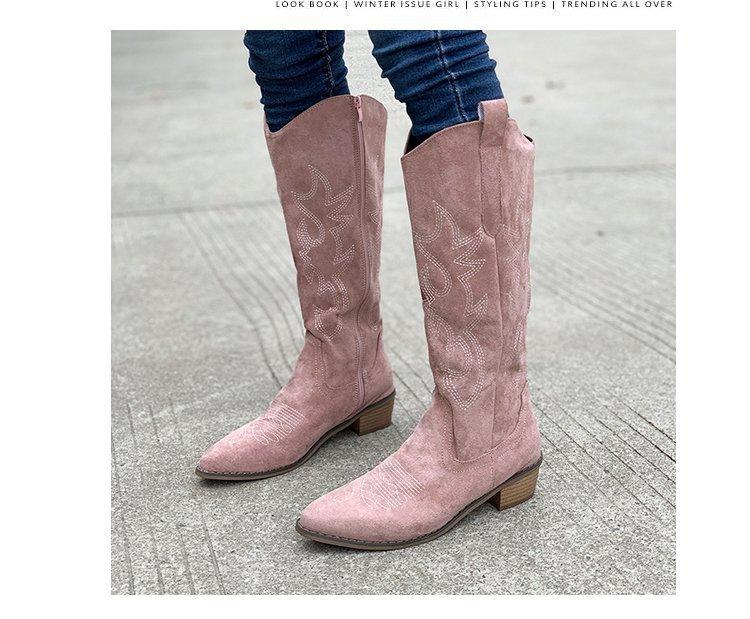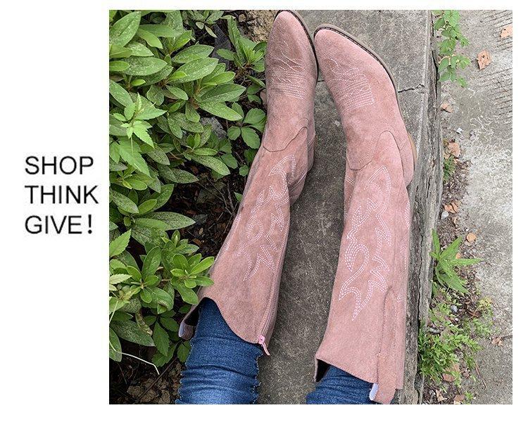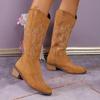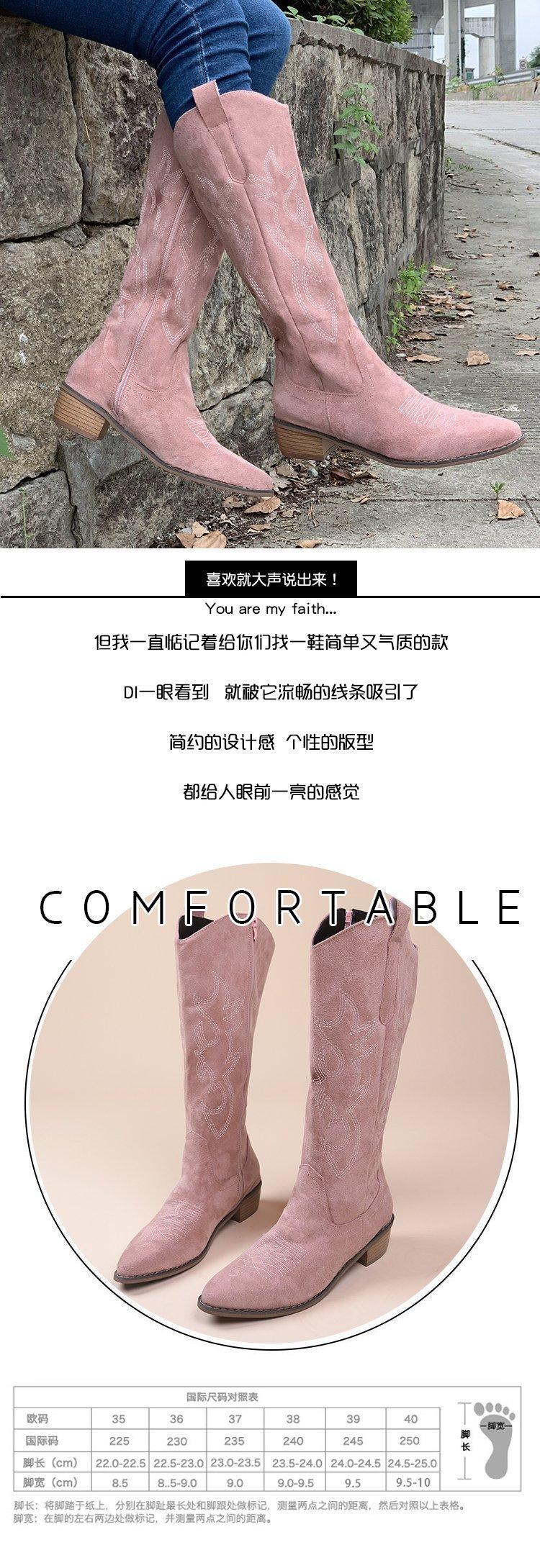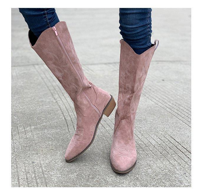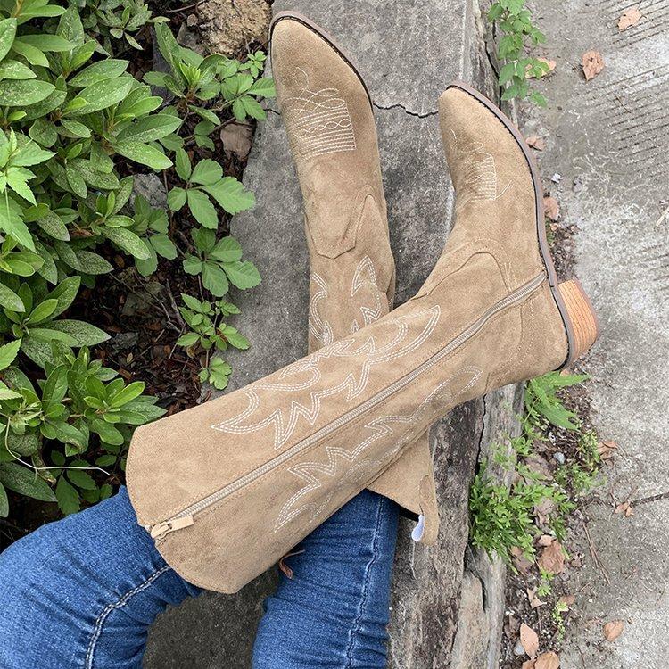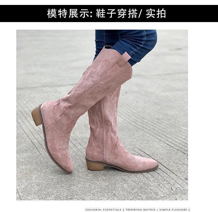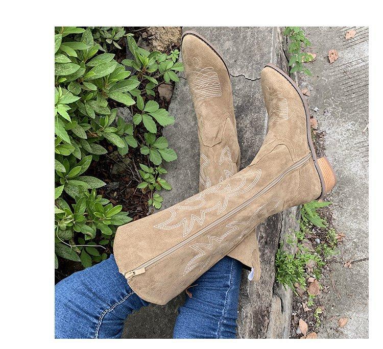 Comercio exterior Nuevo talla grande retro bordado Boca en V Botas Martin de mujer otoño e invierno café tacón grueso media pantorrilla celebridad en línea botas de Caballero