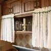 Cortina de encaje floral estilo americano, cortina para puerta, cortina para cocina, cortina sin perforaciones, cortina para sala de estar, dormitorio, sombreado, con cordones