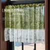Cortina de puerta de comercio exterior con encaje ondulado, partición, transmisión de luz, cortina pequeña con flores, lazo americano, cortina decorativa