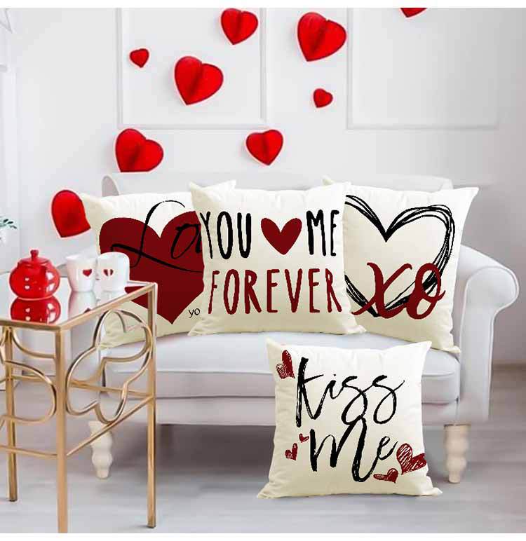 Funda de Almohada de Amor para el Día de San Valentín Nueva Carta de Beso Estampada Funda de Almohada Hogar Sala de Estar Sofá Cubierta de Cojín Decorativa