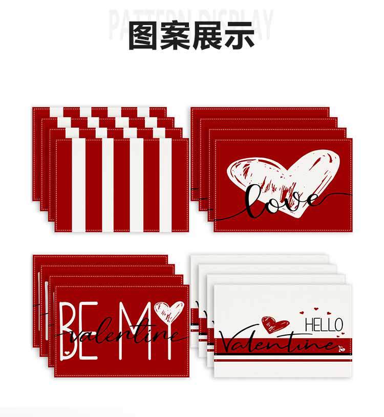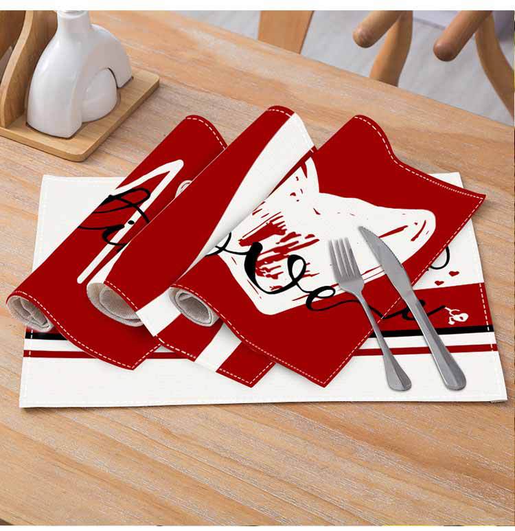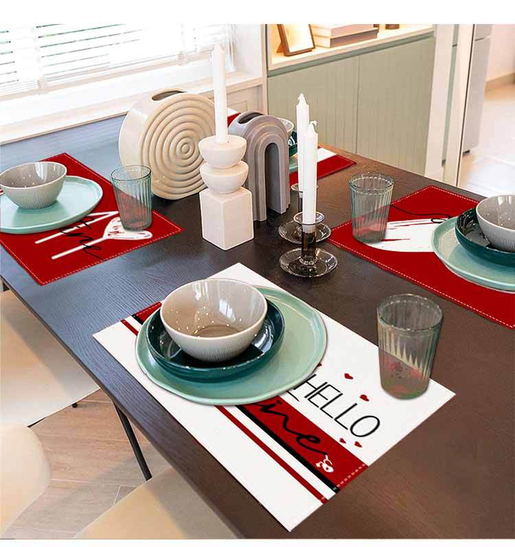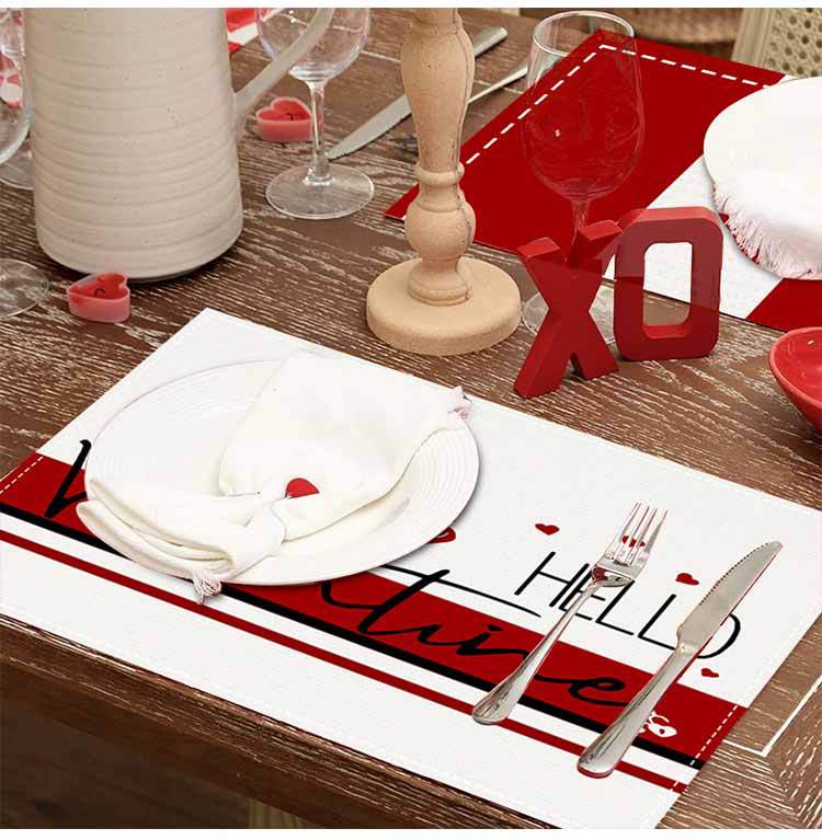 Nuevo mantel individual de lino con rayas rojas para San Valentín, con estampado de letras de amor, tapete de mesa con borde cruzado para fiestas navideñas, tapete aislante térmico