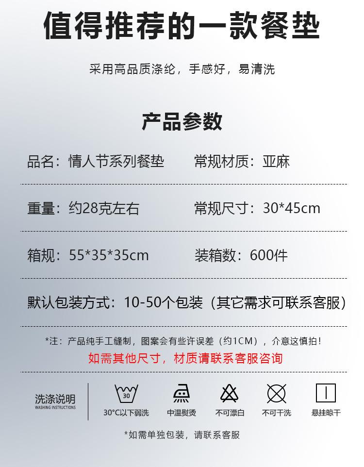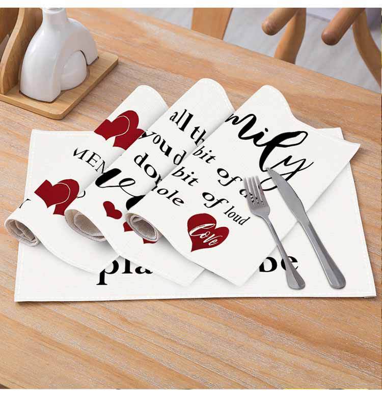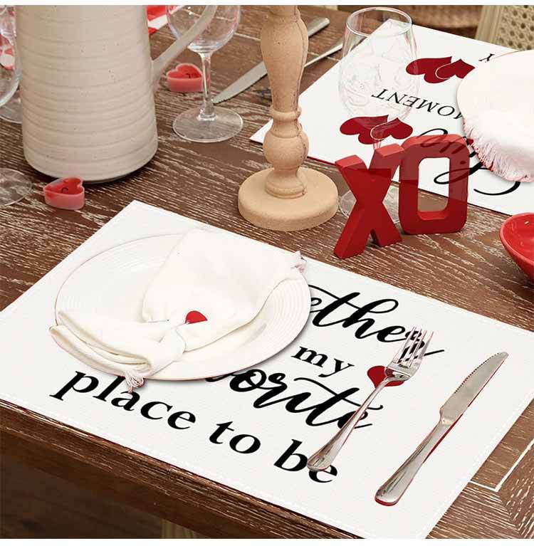 Nuevo mantel individual con carta de amor para San Valentín, decoración para mesa de banquete festivo, tapete aislante térmico, posavasos de lino con borde cruzado