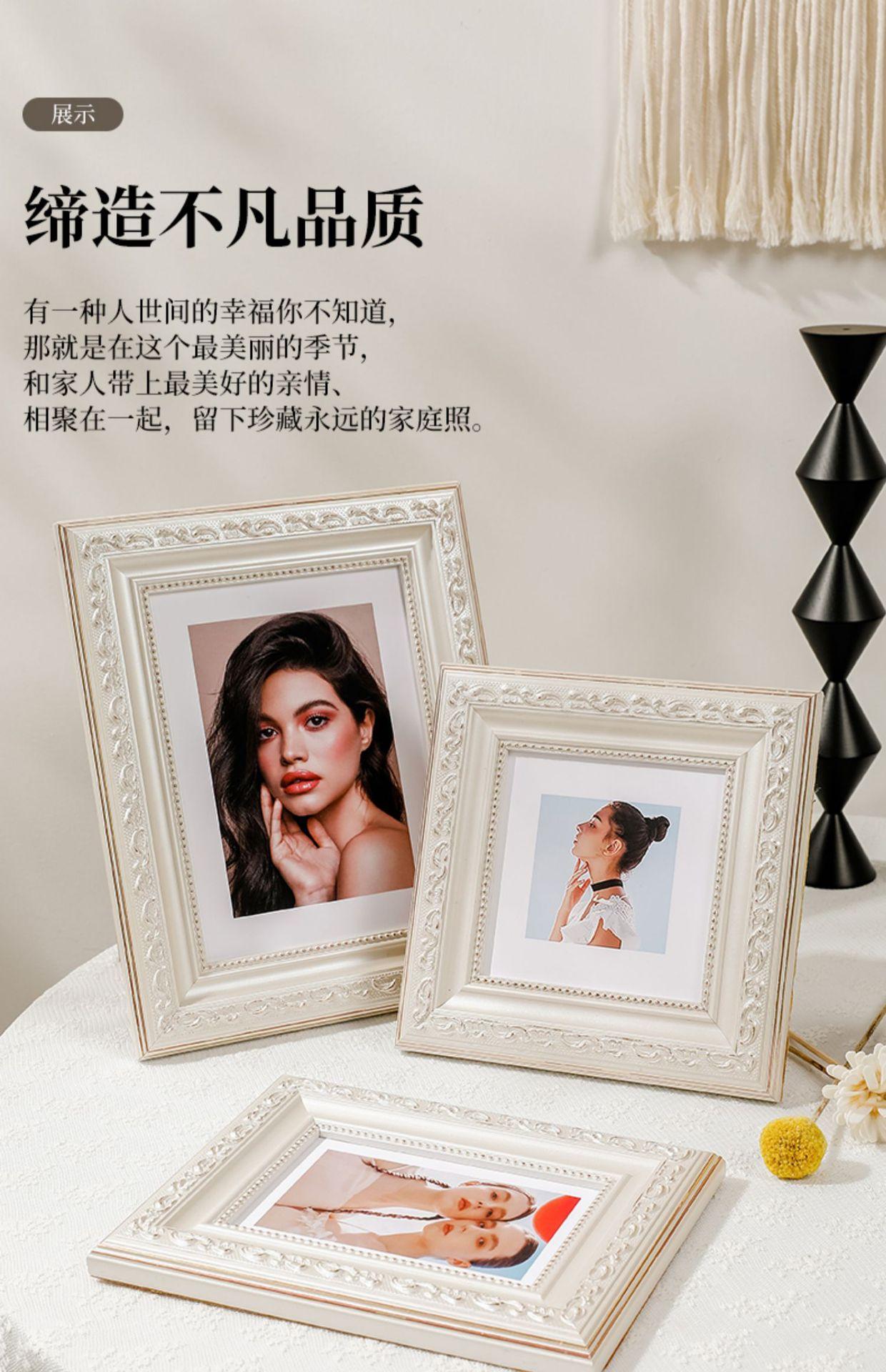 Marco de fotos retro de madera maciza, mesa de 6, 7 y 8 pulgadas, marco de fotos para impresión y lavado de fotos, marco de fotos europeo, marco de pared