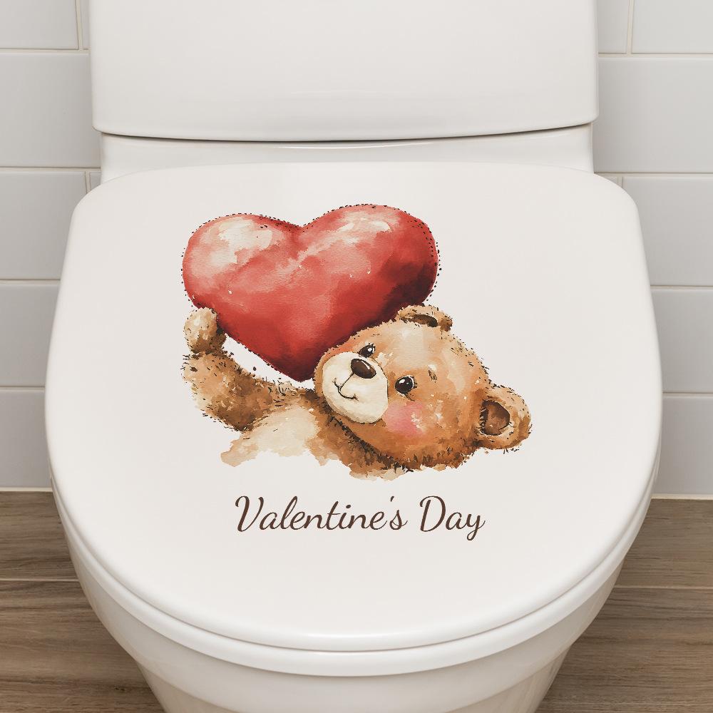 Pegatinas de baño con diseño de oso pintado "fun-m297" para el Día de San Valentín. Pegatinas para embellecer el hogar.
