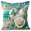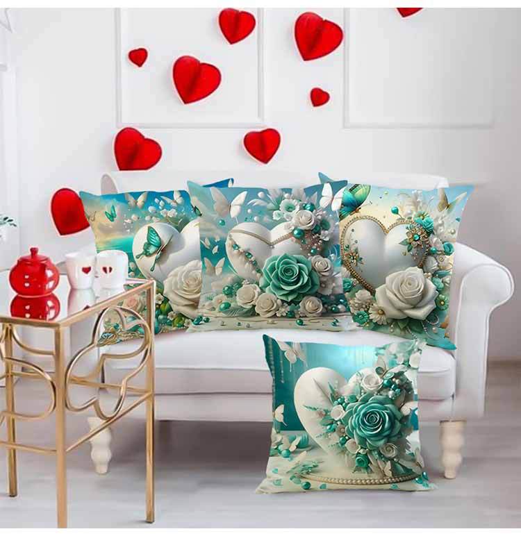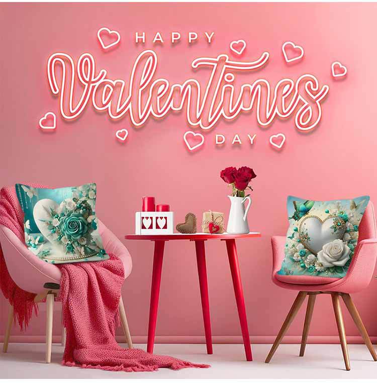 Funda de Almohada con Estampado de Amor para el Día de San Valentín Lino Blanco Rosa Estampado Funda de Almohada Sala de Estar Hogar Sofá Cojín Decorativo