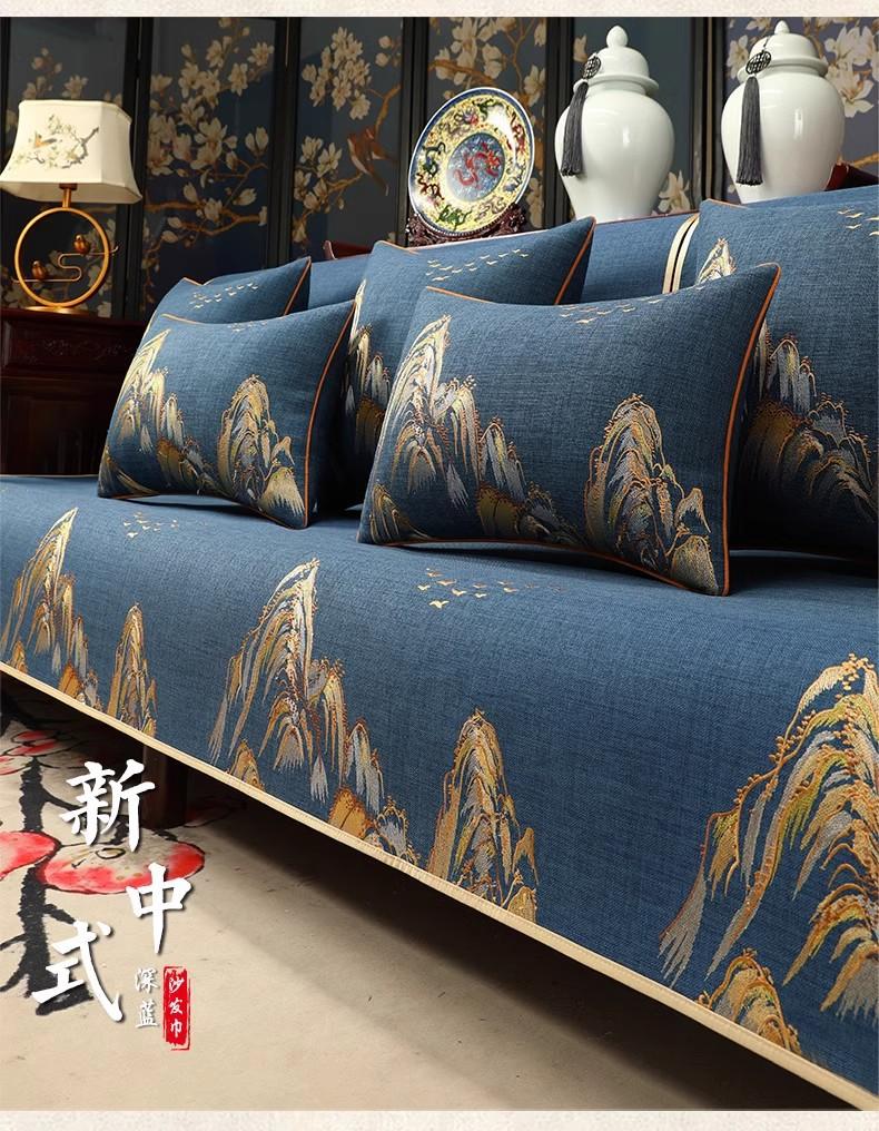 Cojín de Respaldo de Montaña Sofá Chino Sala de Estar Respaldo de Cabecera de Cama de Alta Gama Cojín Grande Funda de Cojín Bordada Estilo Chino con Relleno