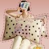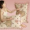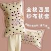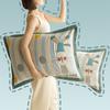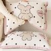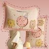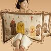 Bonita funda de almohada de gasa de algodón estilo niña, par de fundas de almohada de algodón y lino transpirables y absorbentes con botones de dibujos animados.