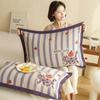 Funda de Almohada de Gasa de Algodón Clase A Un Par de Fundas de Almohada de Algodón de Dibujos Animados Absorbentes de Sudor Transpirables de Algodón Lino con Botones Cubierta de Funda de Almohada