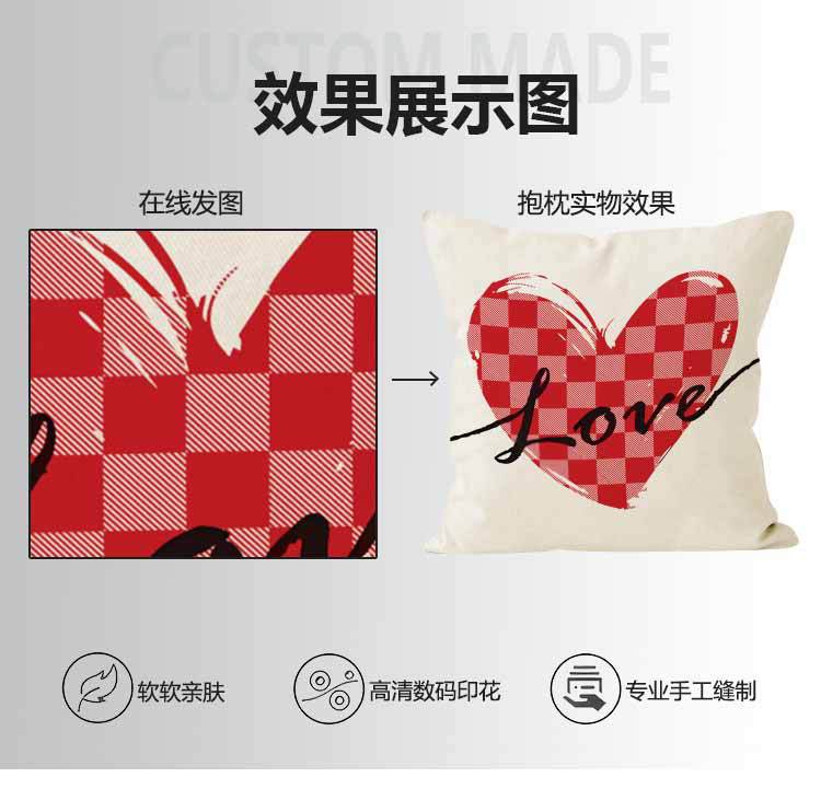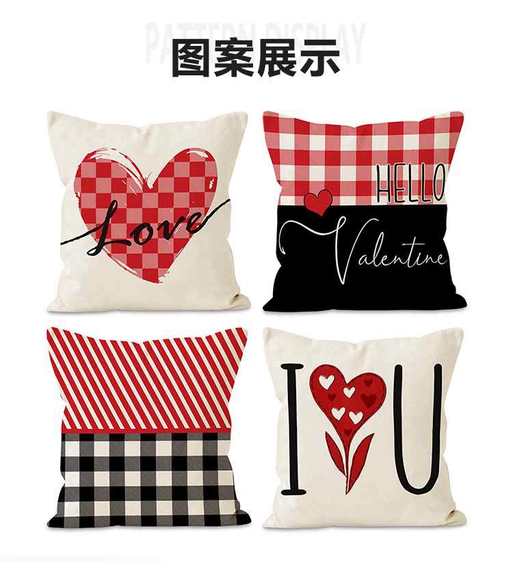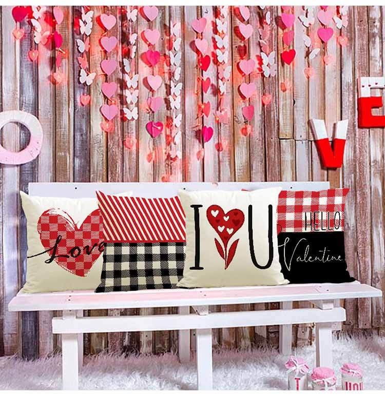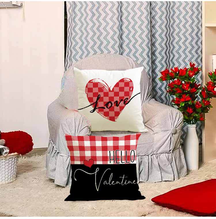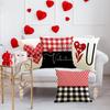 Nueva funda de almohada de San Valentín con estampado de letras a cuadros negros y rojos, funda de cojín para sofá de sala de estar