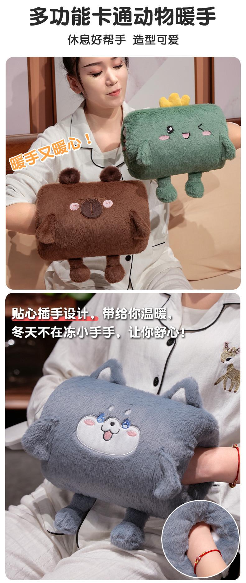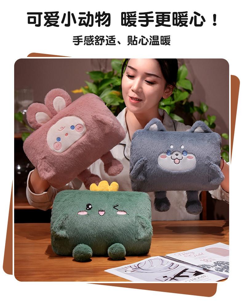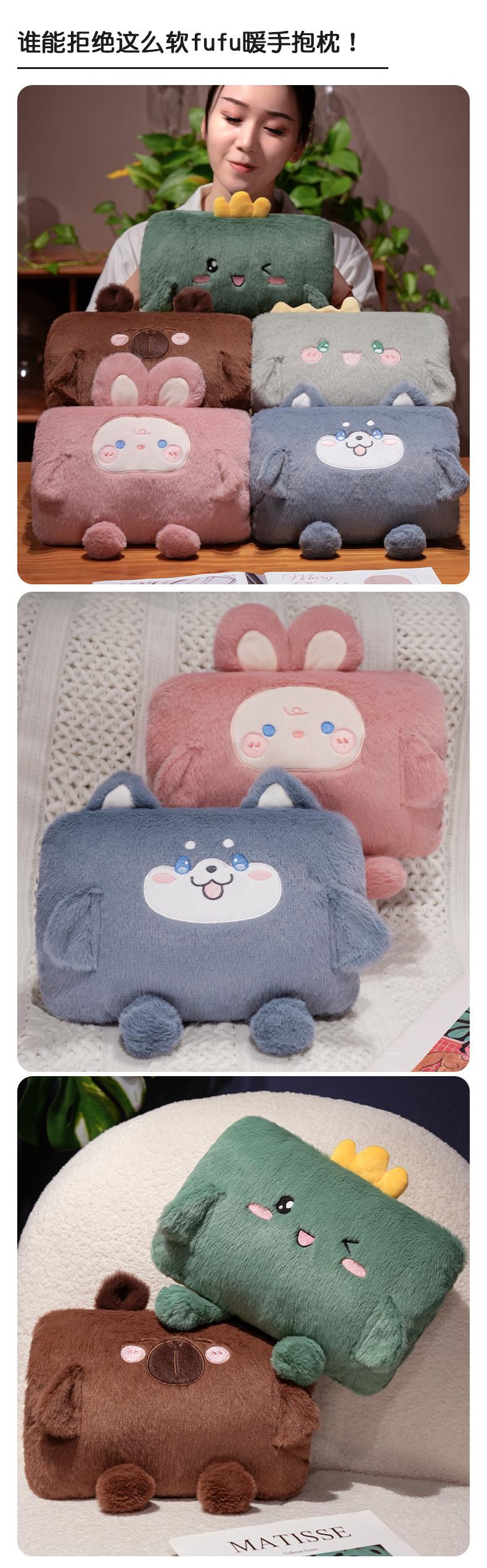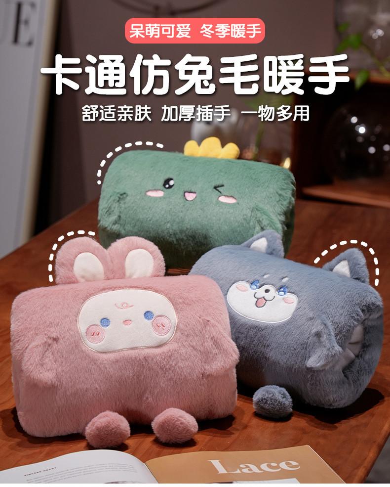 Lote de regalo de actividad de muñeco de almohada calentadora de manos de animal con piel de conejo lindo de dibujos animados creativos de invierno