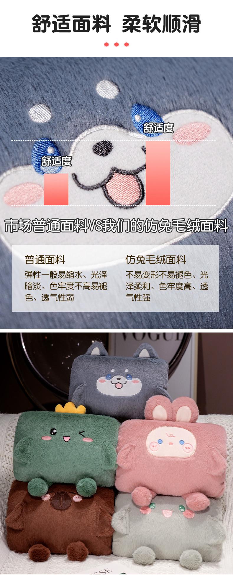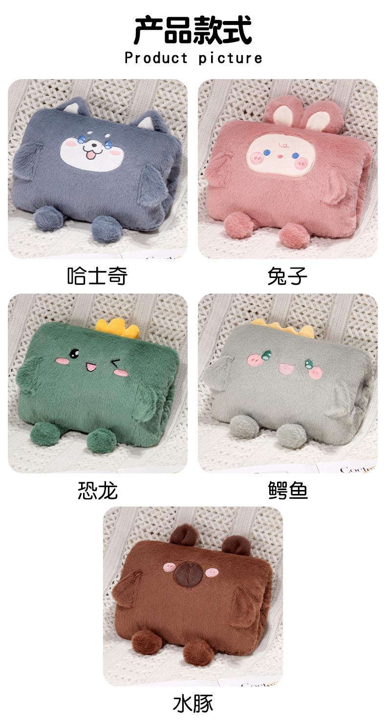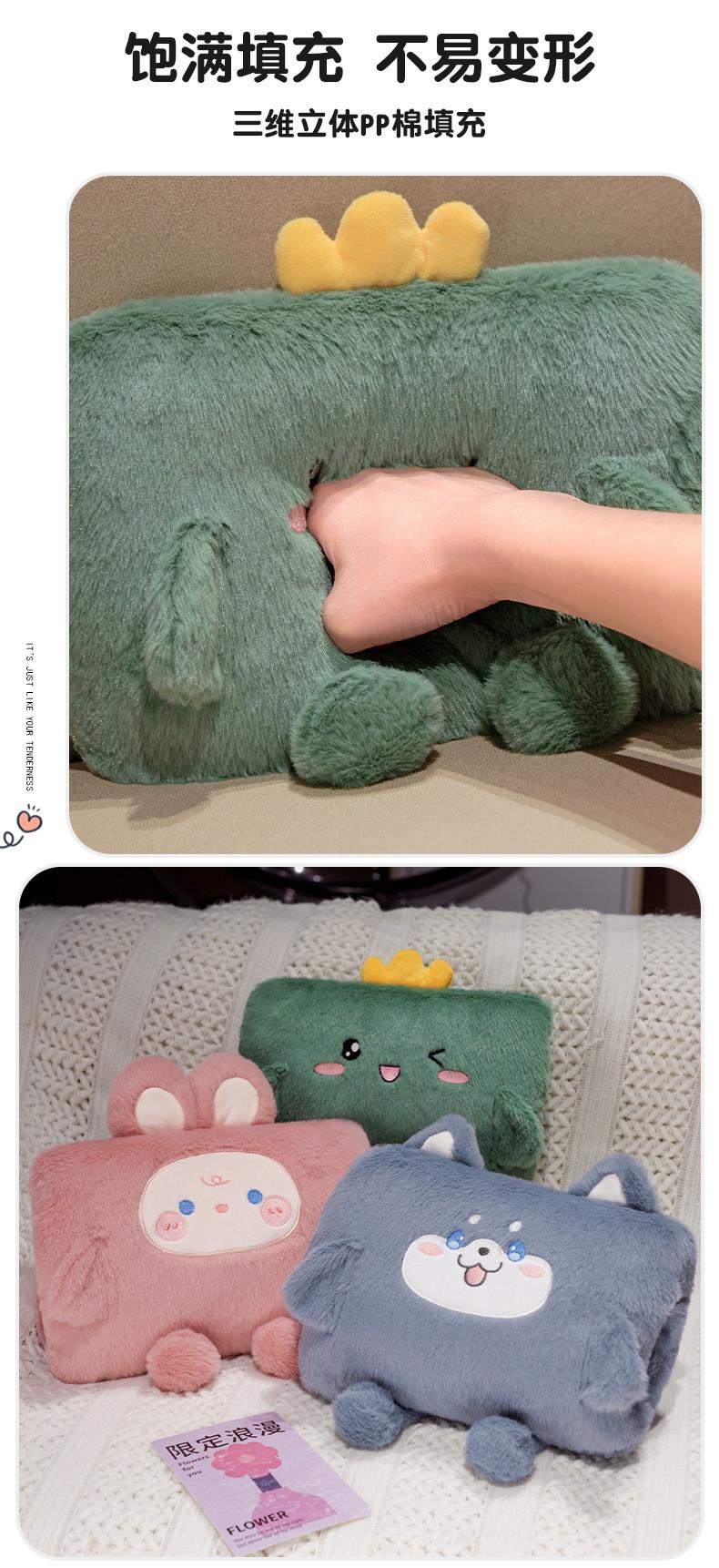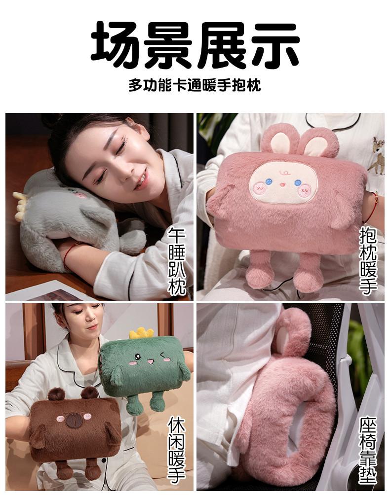 Lote de regalo de actividad de muñeco de almohada calentadora de manos de animal con piel de conejo lindo de dibujos animados creativos de invierno