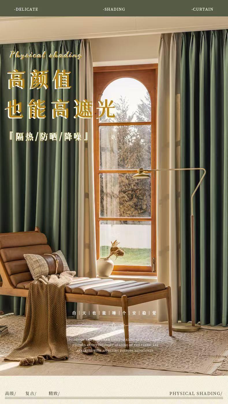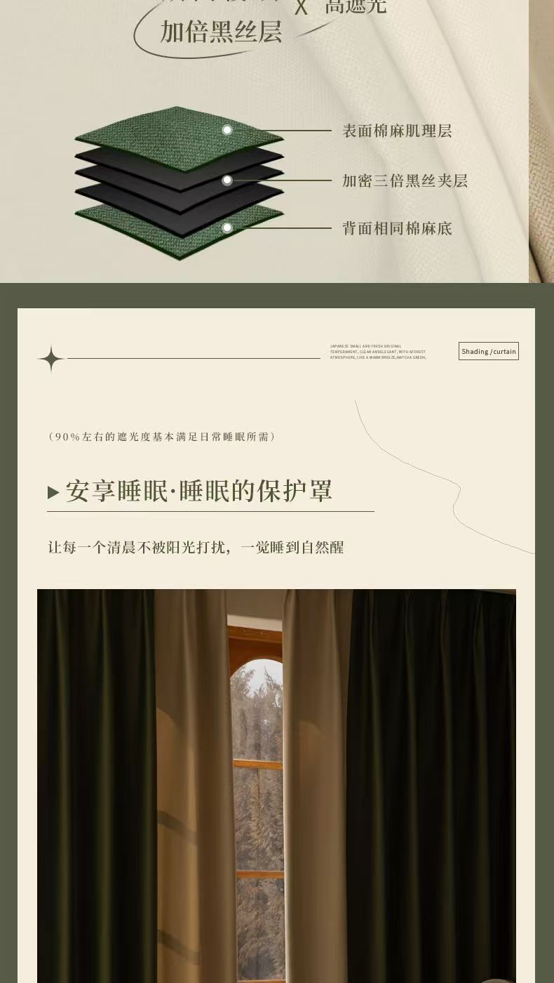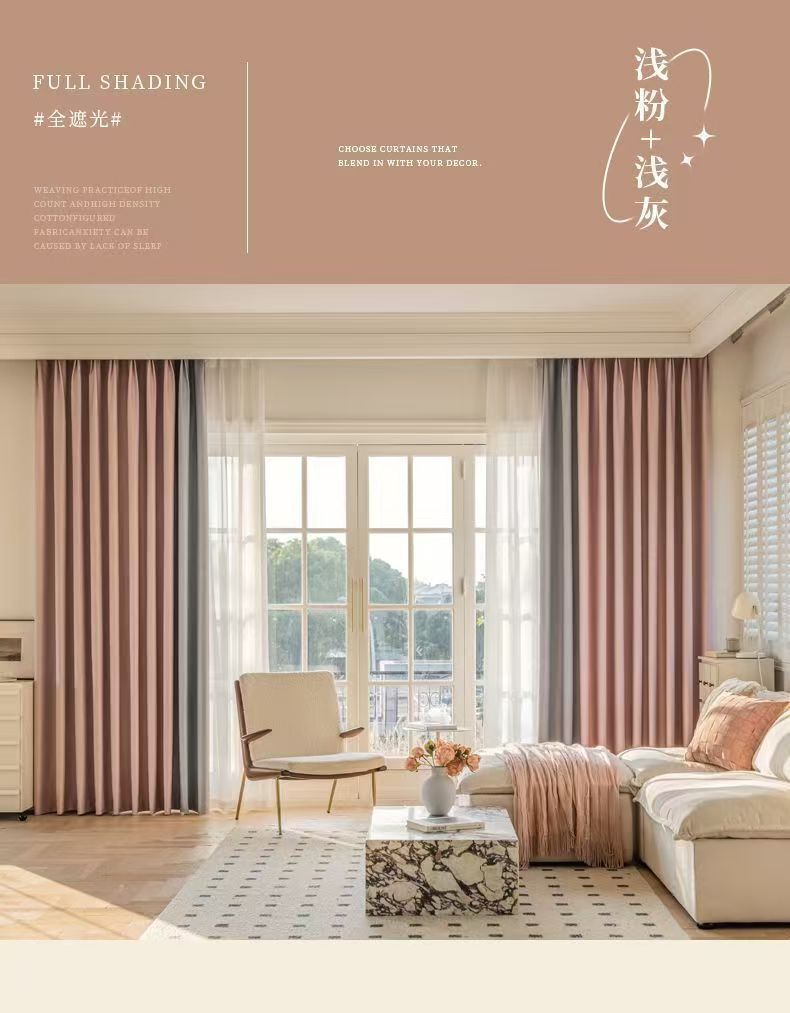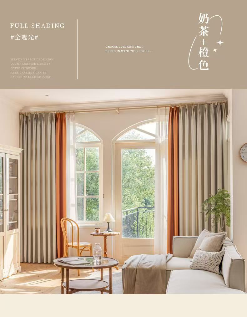 Cortina Shaoxing de algodón y lino, estilo francés, color crema, con sombreado completo, para dormitorio, ligera y de lujo, venta al por mayor