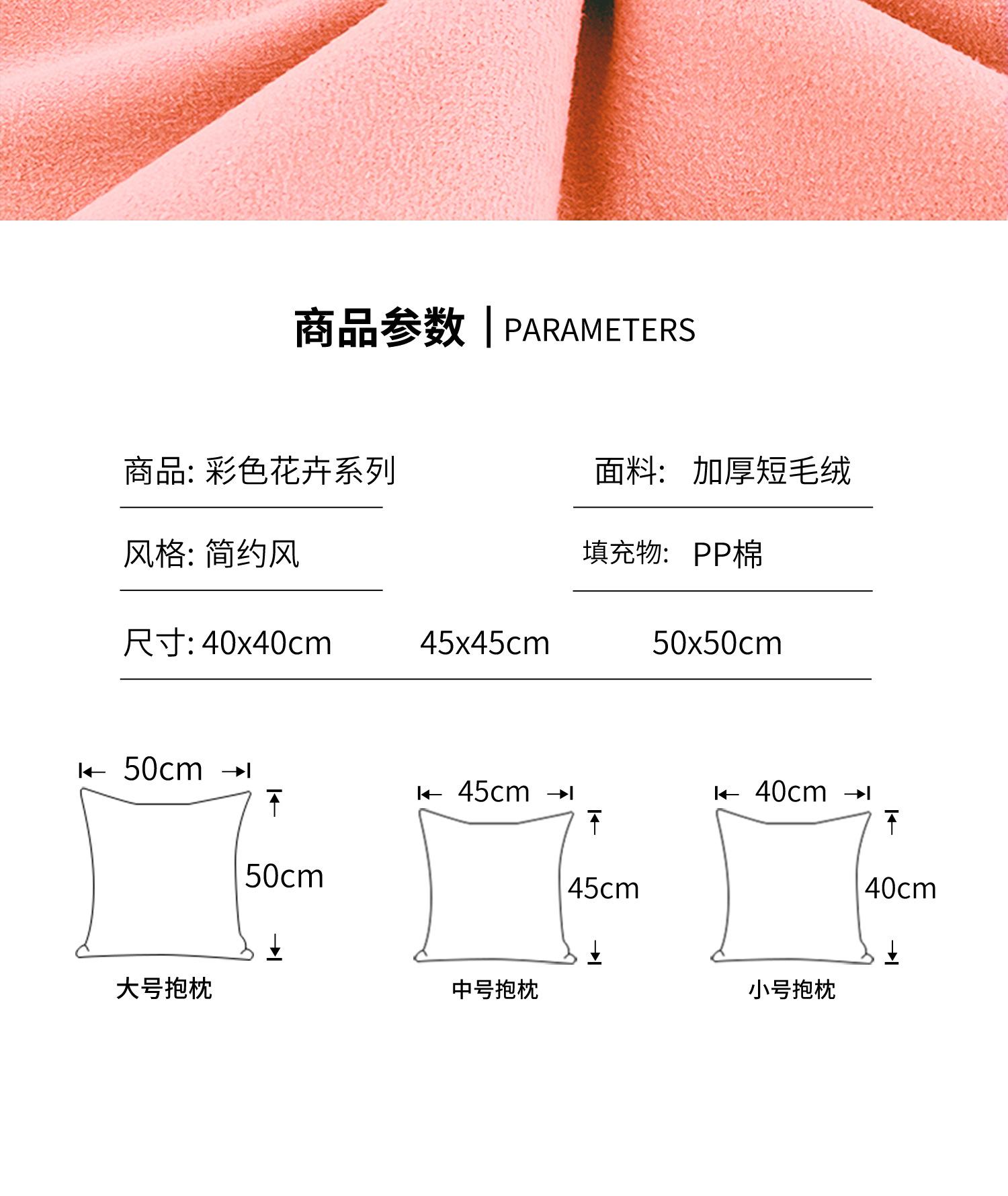 40x 40cm (pillowcase), 40x 40cm (pillowcase + pillow core), 45x 45cm (pillowcase), 45x 45cm (pillowcase + pill...