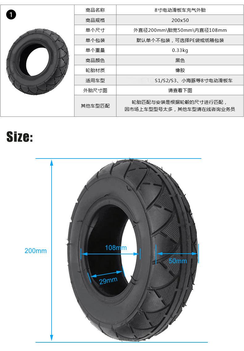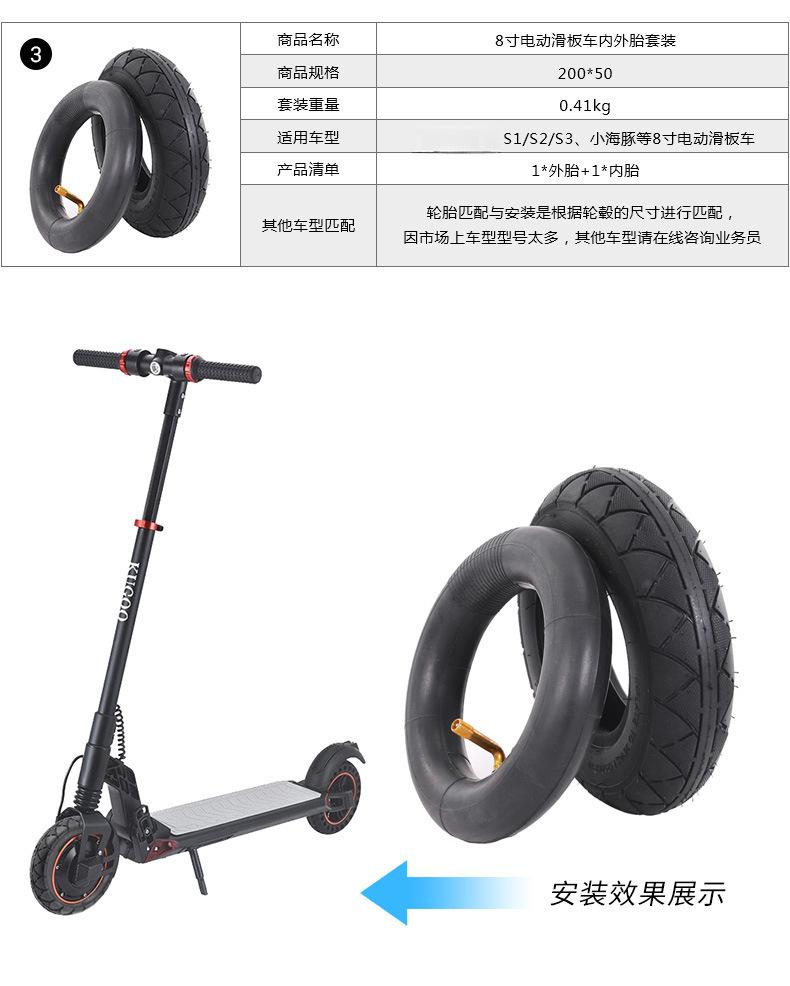 Accesorios para scooter eléctrico compatibles con scooter Dolphin KugooS1S2S3, neumáticos interiores y exteriores inflables antideslizantes de 8 pulgadas.
