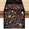 Mantel decorativo de lino con estampado de rosas para San Valentín, fiesta, cocina, sala de estar, con borde cruzado