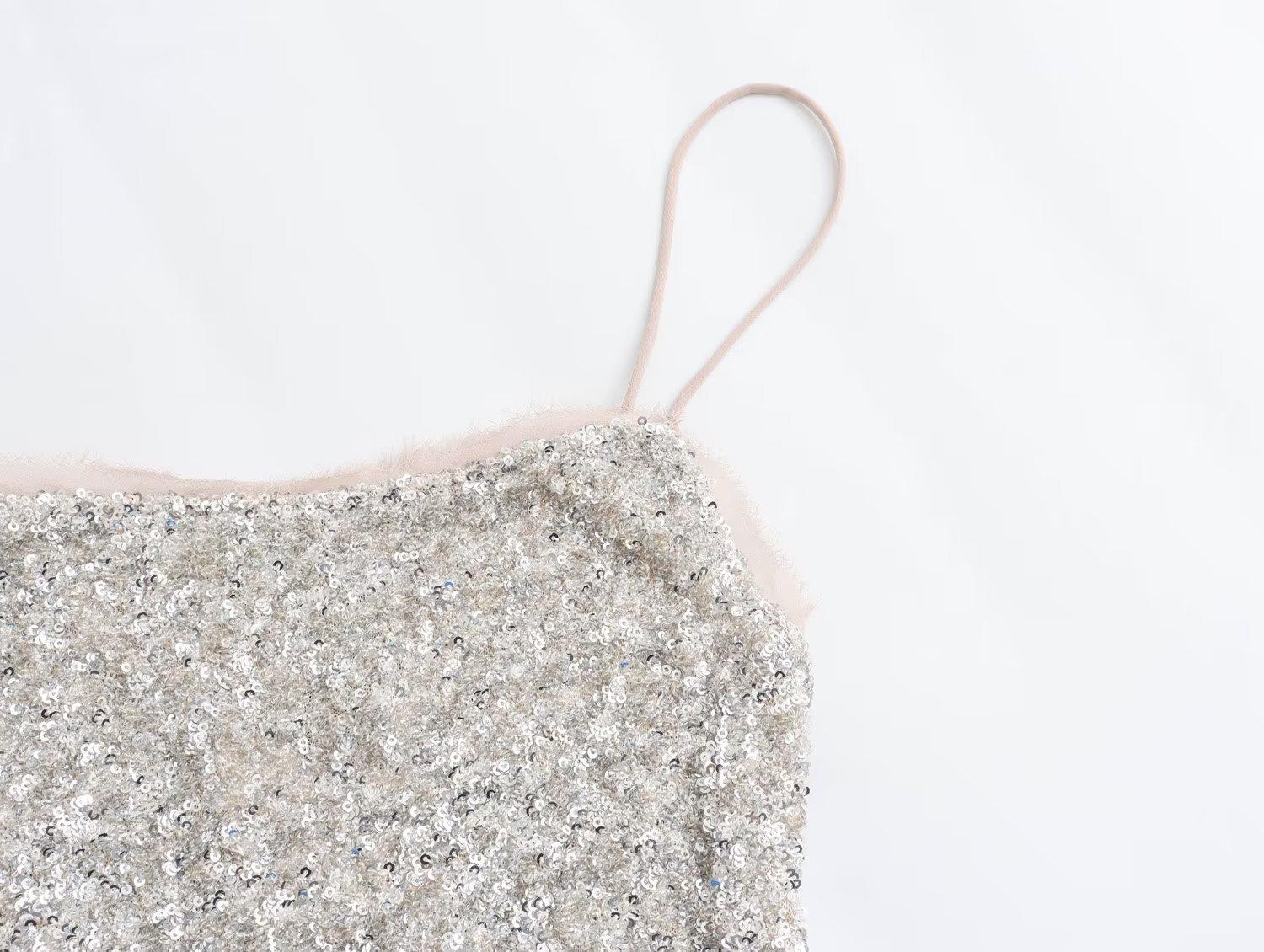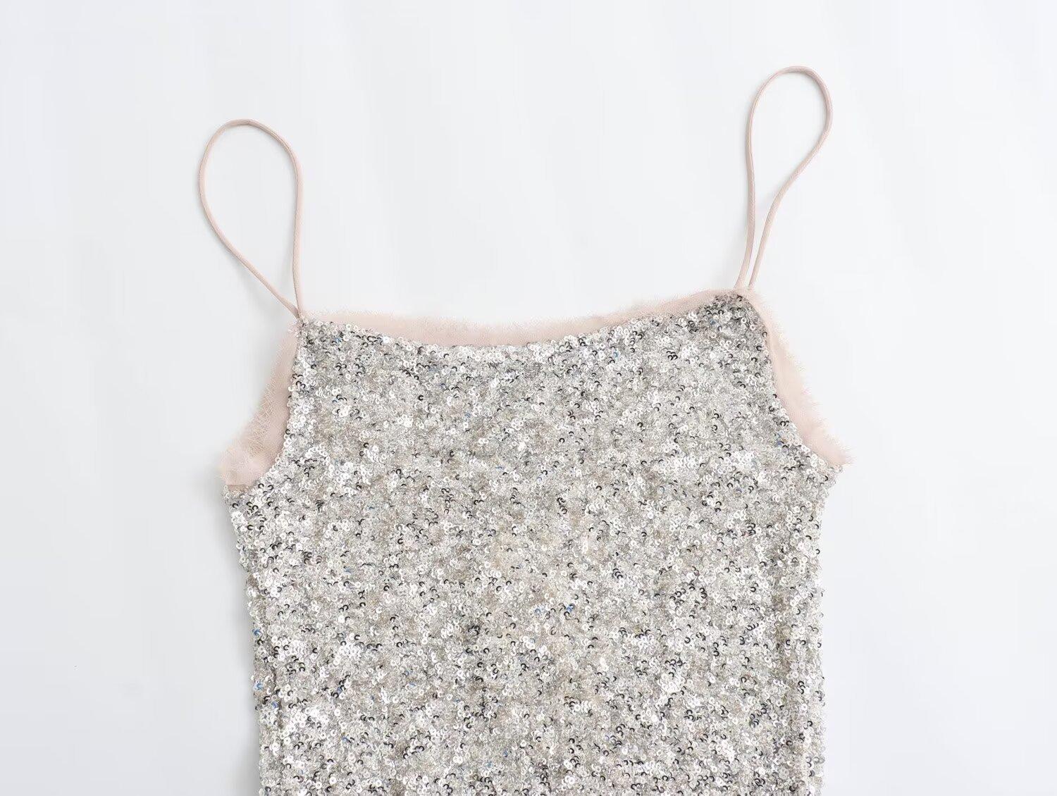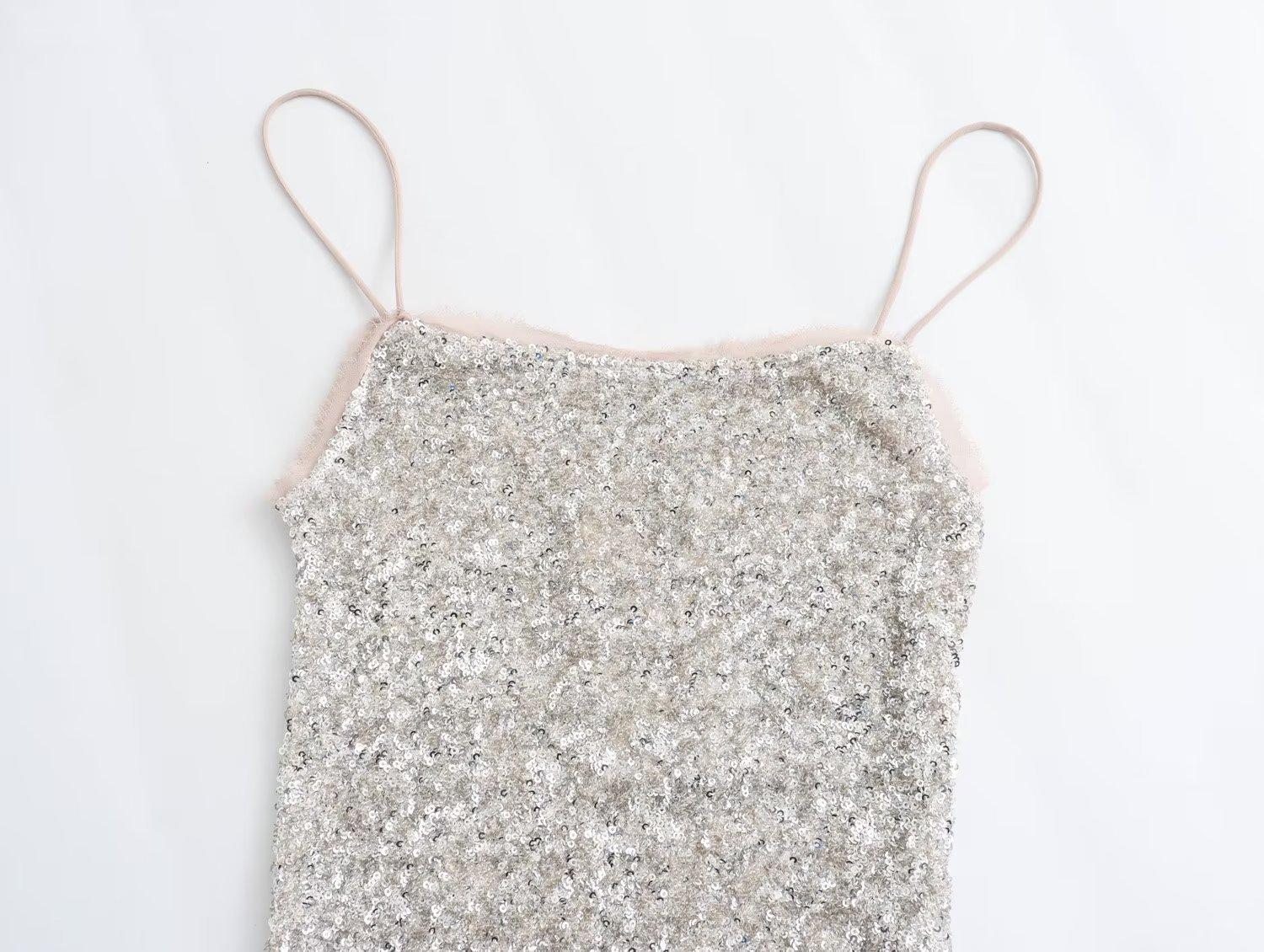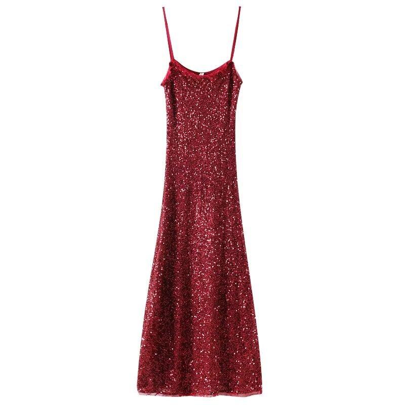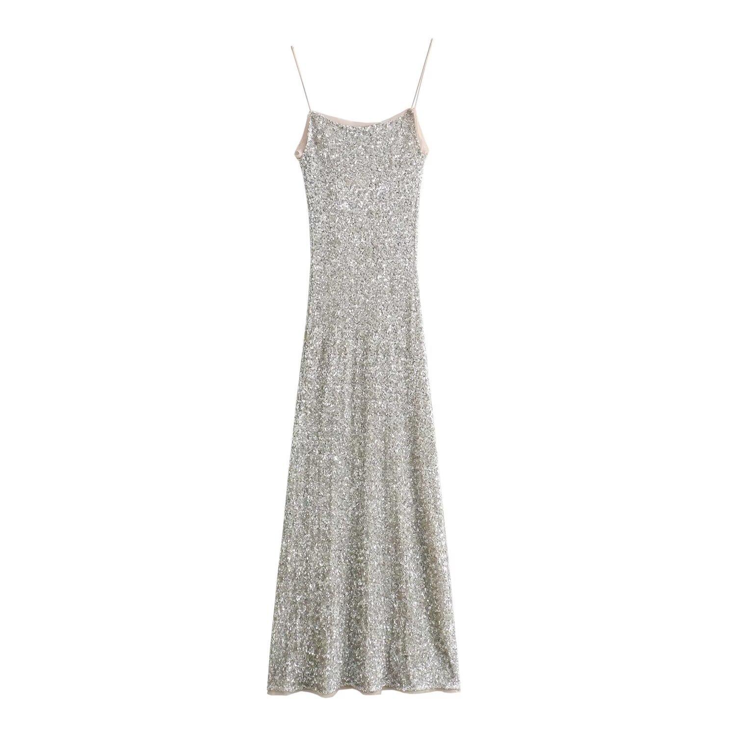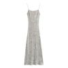 Primavera 2024, nuevo vestido de tirantes de color sólido ajustado con ropa interior de abalorios maduros ligeros de temperamento transfronterizo europeo y americano para mujer