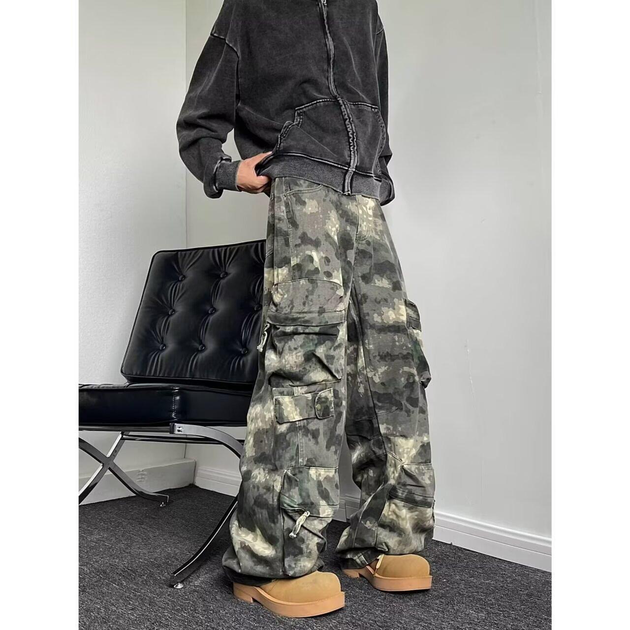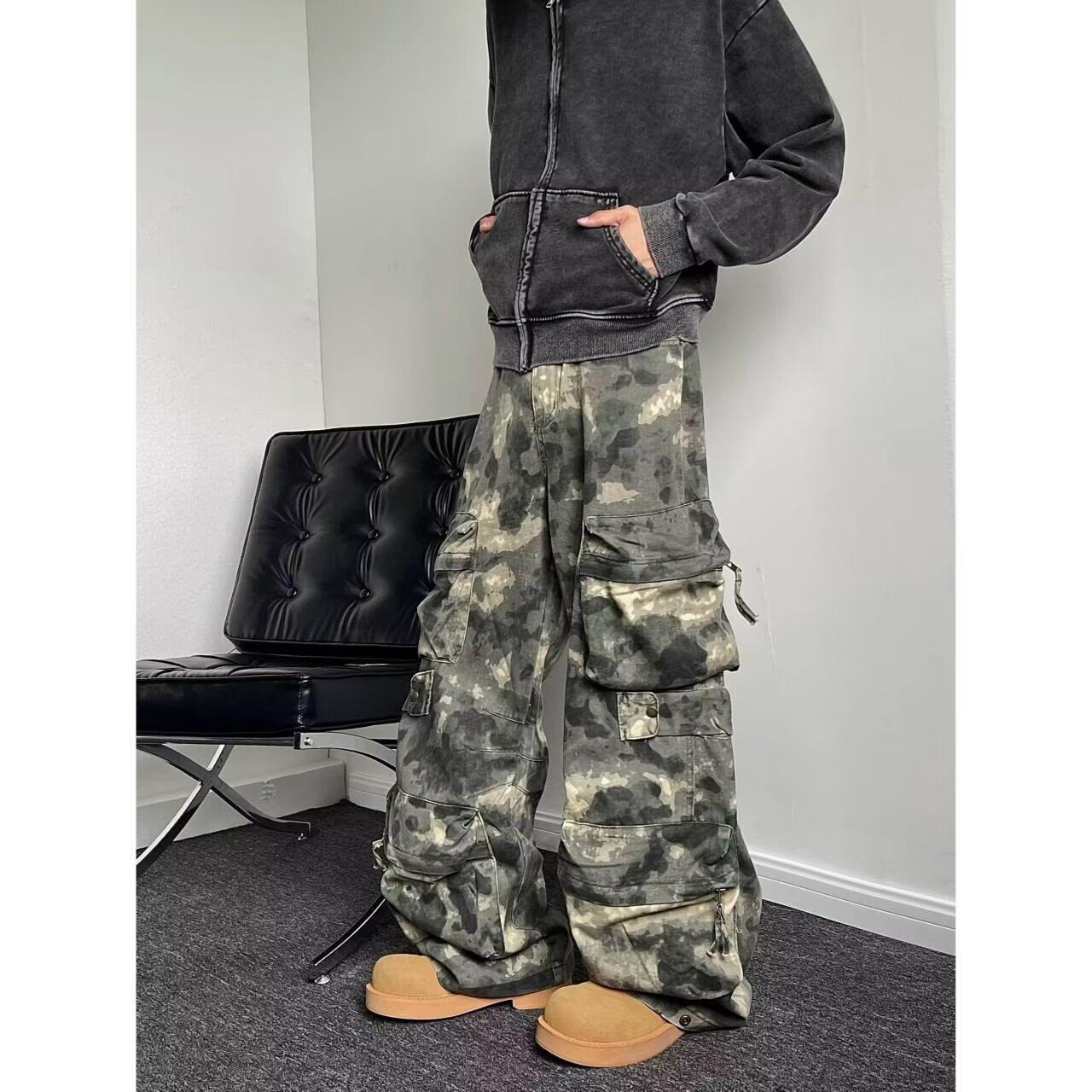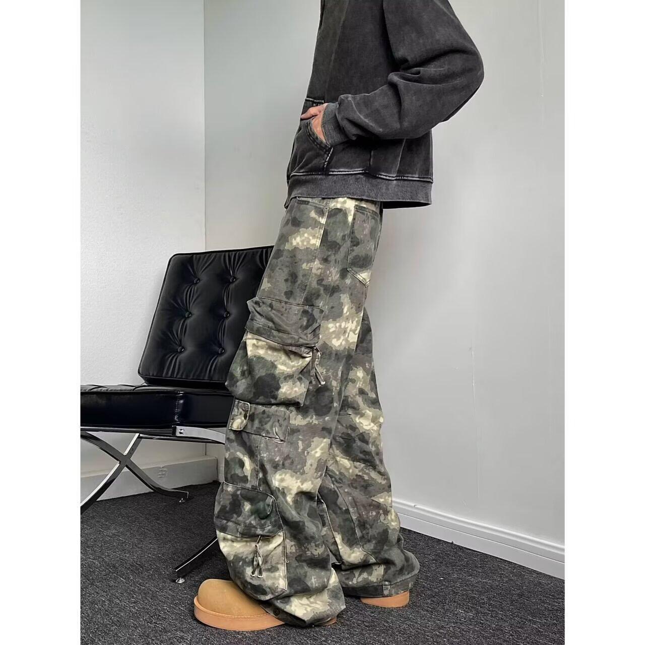 Compra Pantalones vaqueros retro multibolsillos de estilo americano, de primavera y otoño, de camuflaje, holgados y resistentes al desgaste, pantalones largos casuales. al por mayor en Joom.pro
