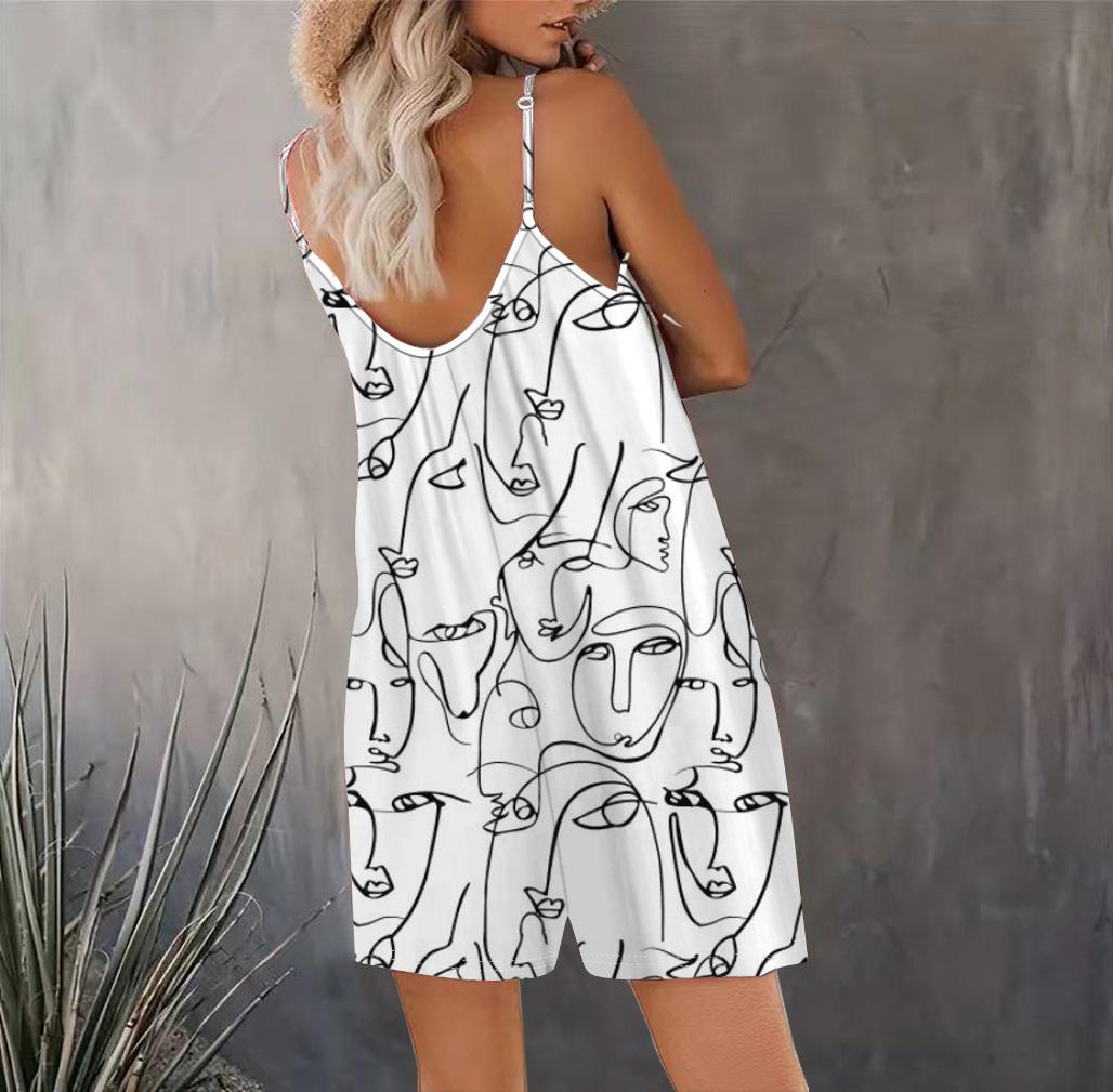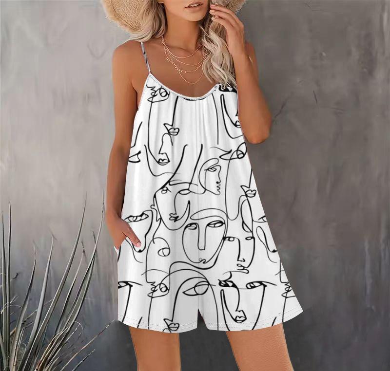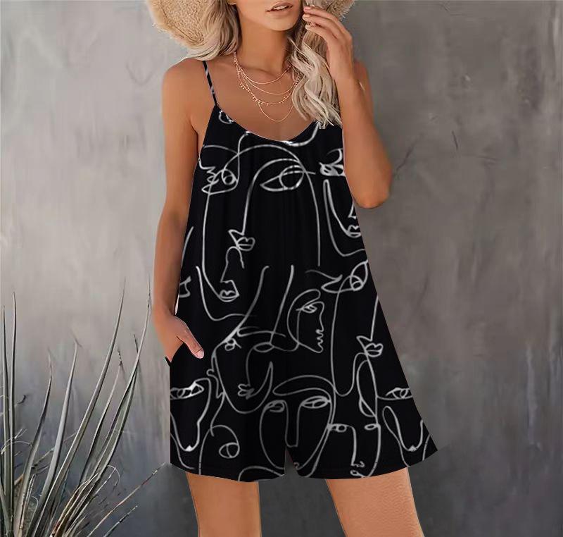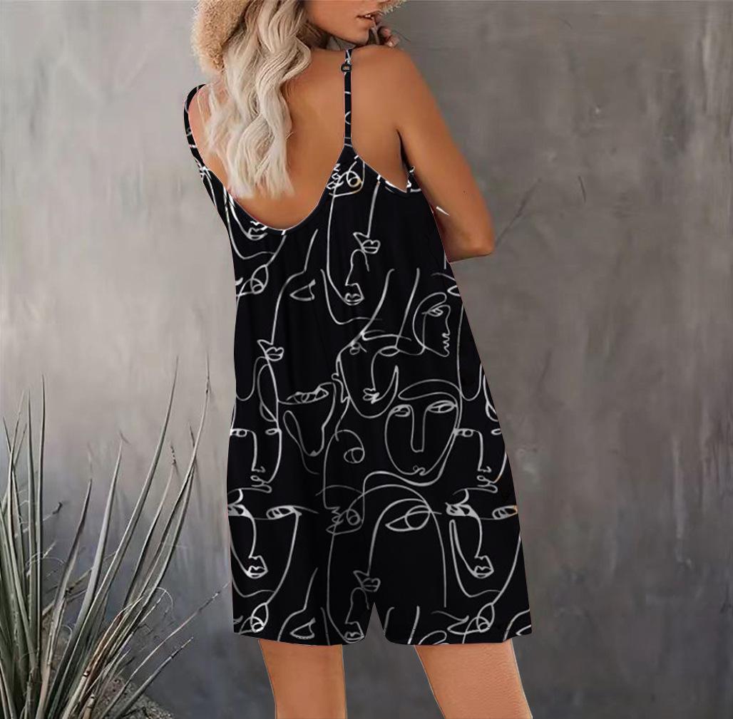 Camisola casual de primavera/verano para mujer, shorts, mameluco de verano estampado sin mangas, estilo europeo y americano para adelgazar
