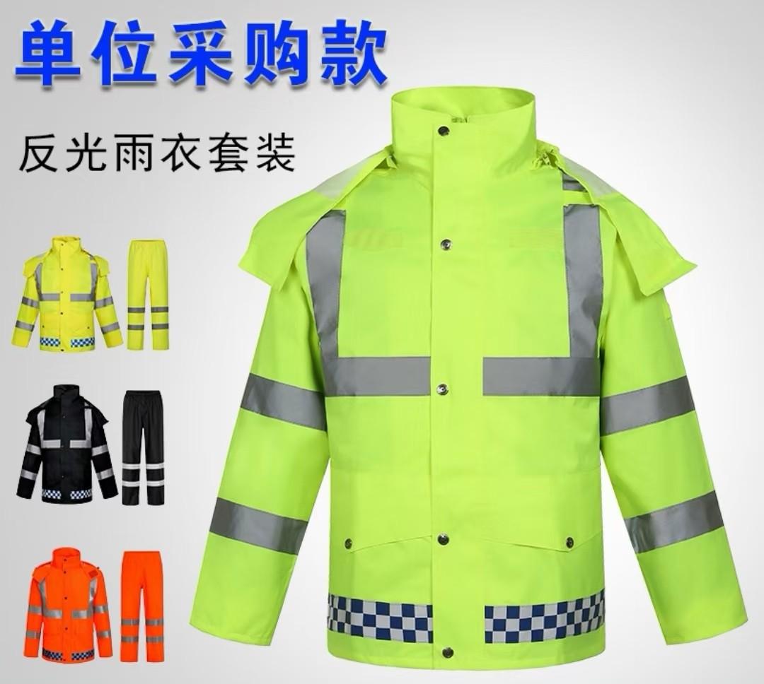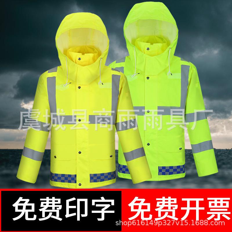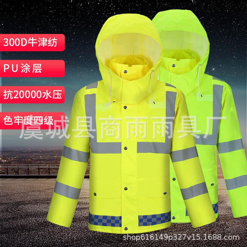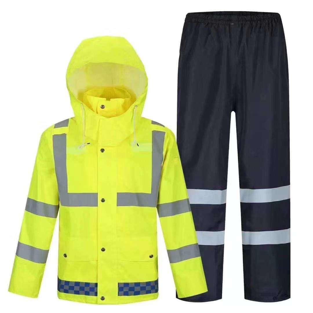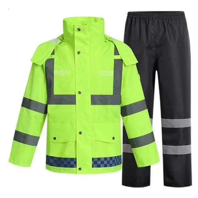 Traje de impermeable reflectante para tráfico y pantalones de lluvia verde fluorescente para patrulla al aire libre y rescate, impermeable de seguridad dividido al por mayor