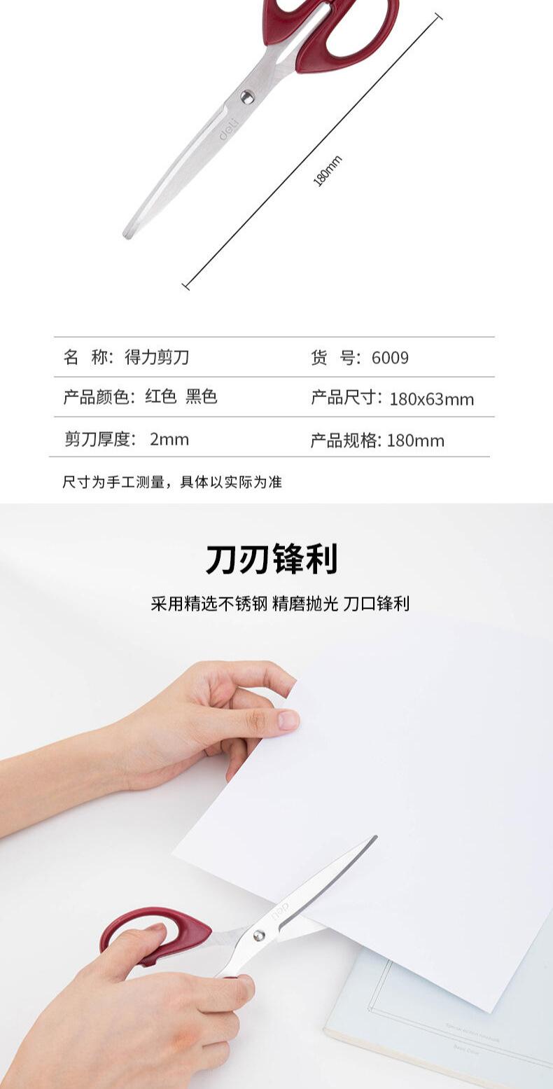 Deli 6009 scissors red [180mm long]