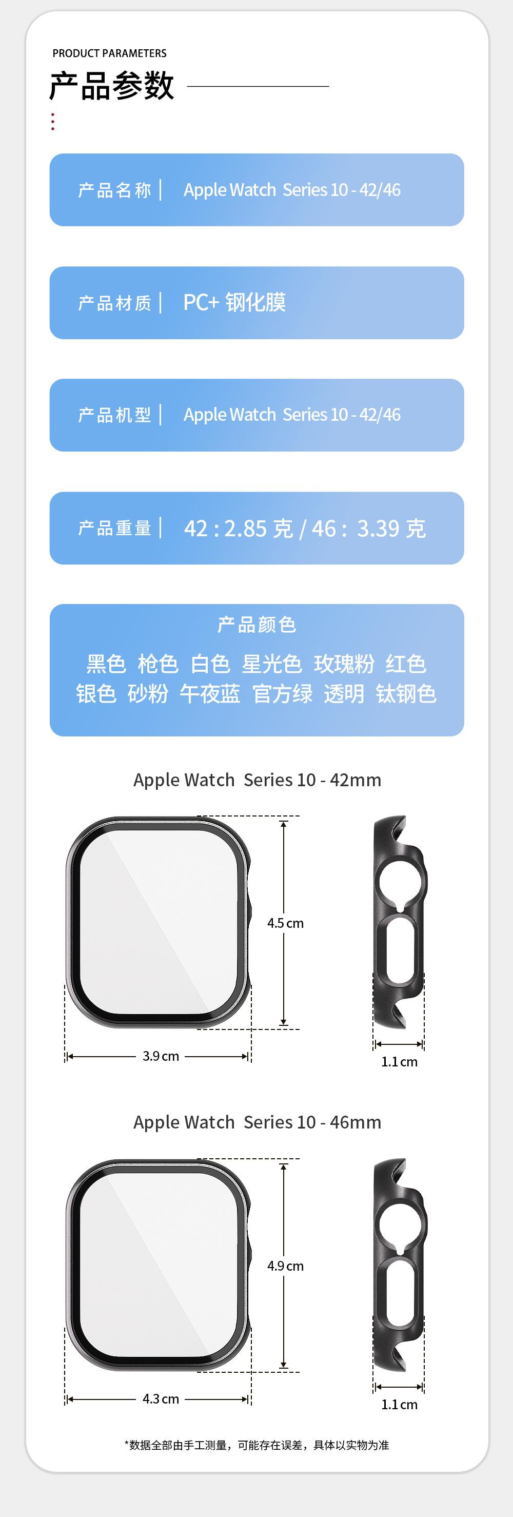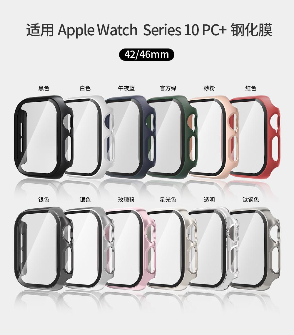 Aplicable a la funda para Apple Watch Apple Watch de 10ª generación funda de PC + película de vidrio templado funda protectora cubierta anticaídas