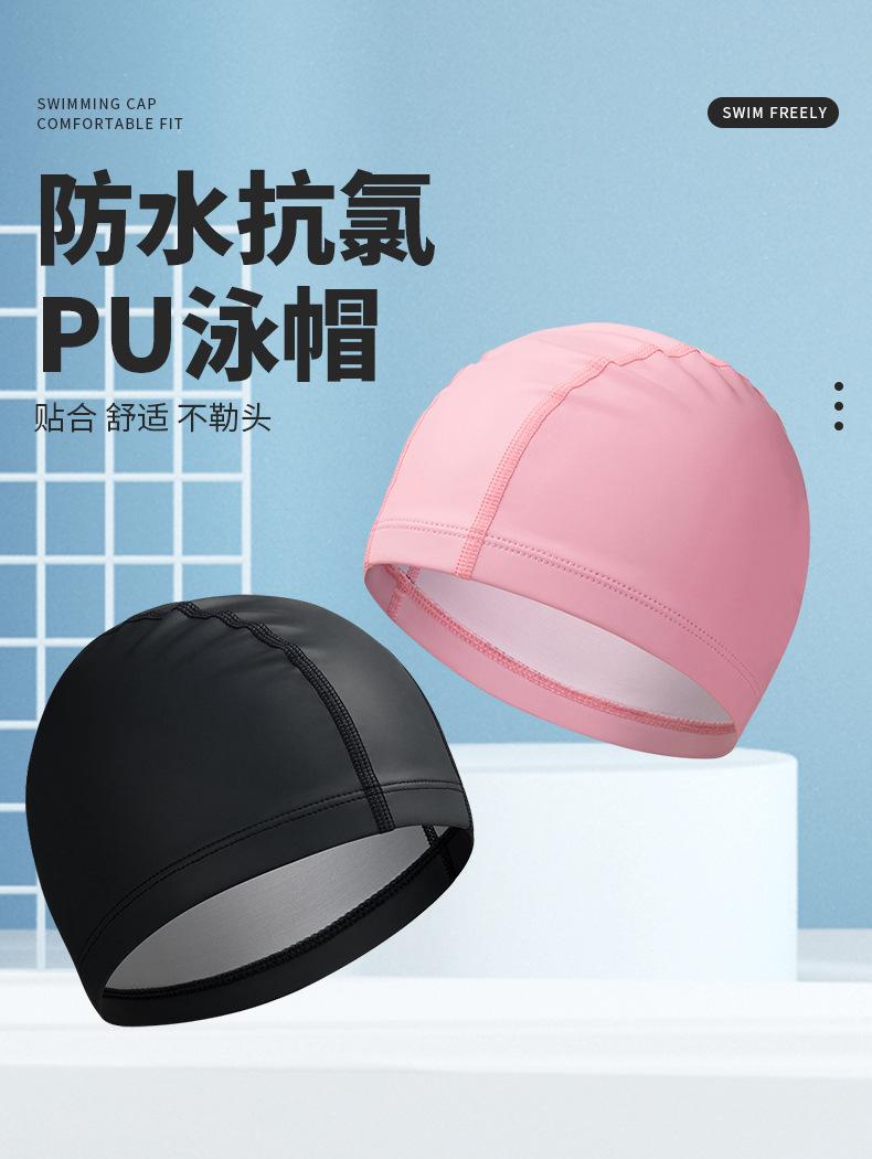 Gorro de natación de pu fabricante de origen color sólido gorro de natación grande impermeable adulto hombres y mujeres multicolor gorro de natación recubierto de cuero pu al por mayor