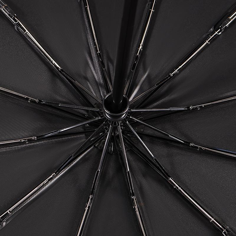 Parámetros: Paraguas de 23 pulgadas y 12 varillas, totalmente automático, de doble varilla y cinta negra.