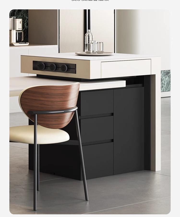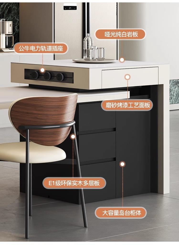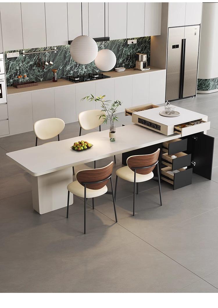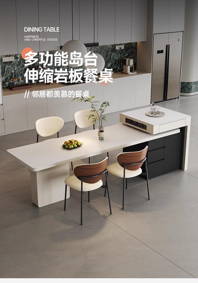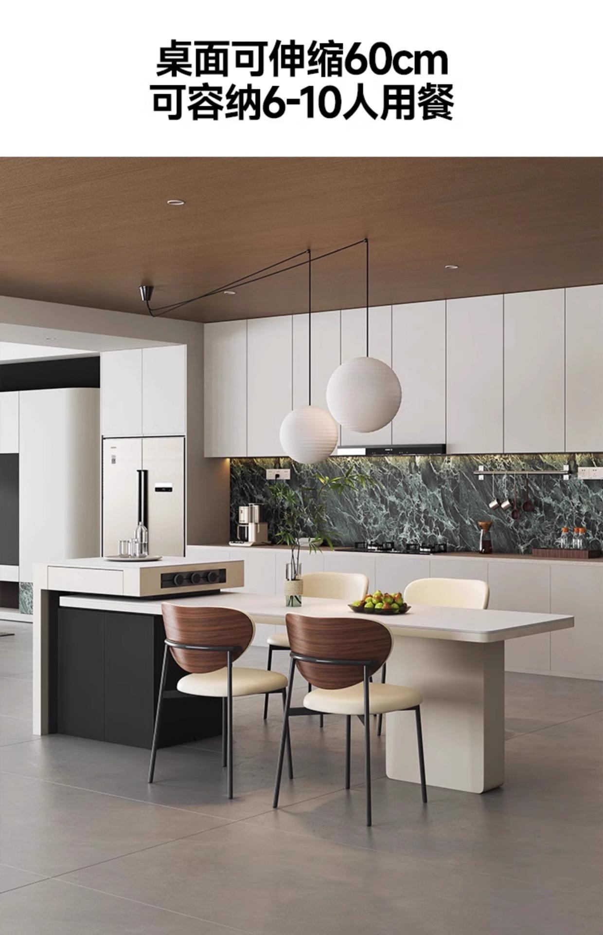 Mesa Isla de Lujo Ligero Italiano Mesa de Comedor Retráctil Integrada para el Hogar Moderna Simple Caída Media de Alta Gama Cocina Placa de Roca Mesa Guía