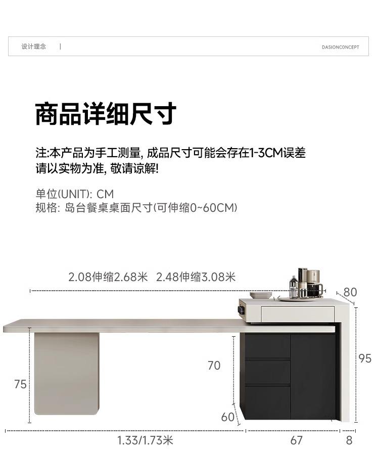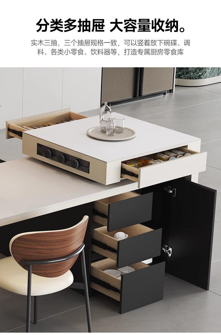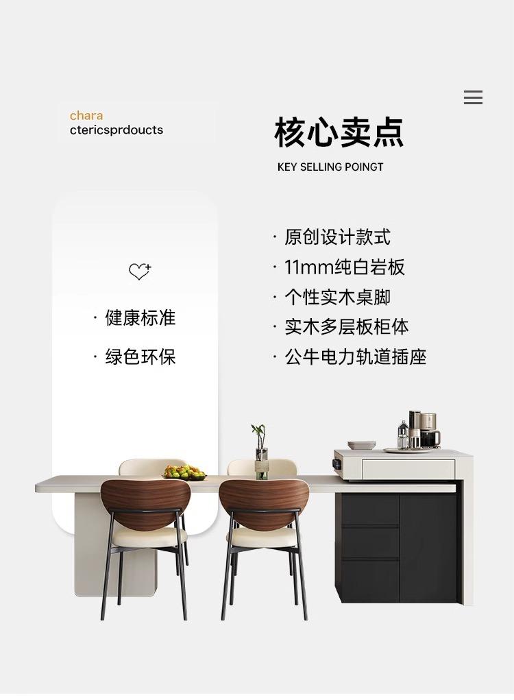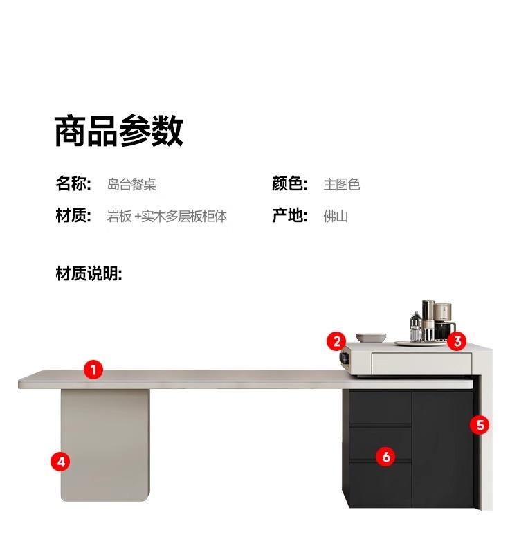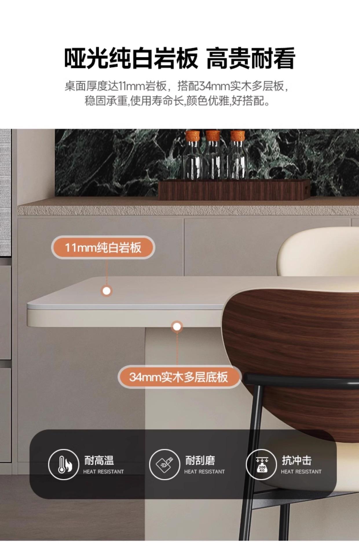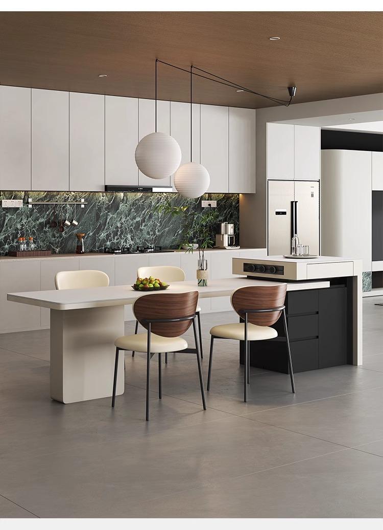 Mesa Isla de Lujo Ligero Italiano Mesa de Comedor Retráctil Integrada para el Hogar Moderna Simple Caída Media de Alta Gama Cocina Placa de Roca Mesa Guía
