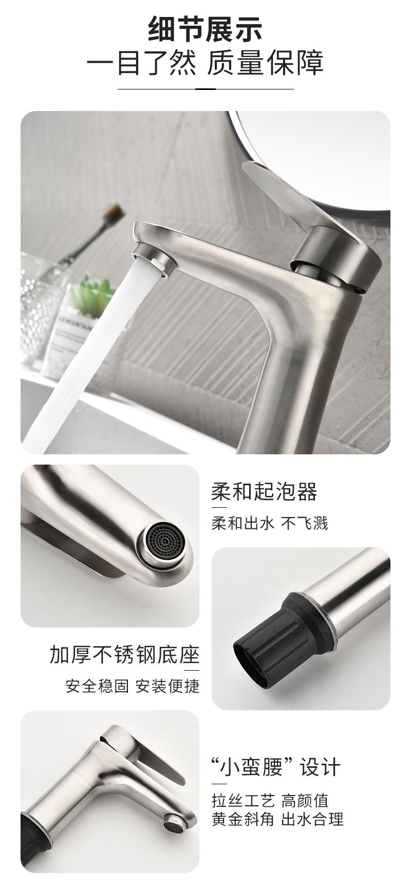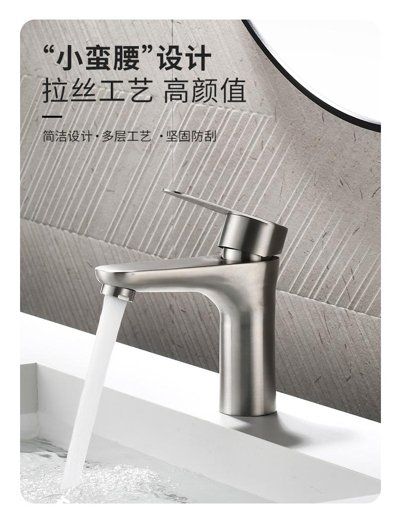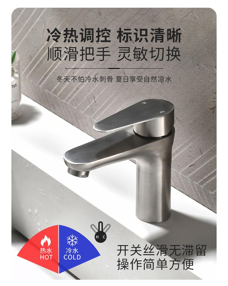 Grifo de lavabo de acero inoxidable 304 para baño, inodoro, lavabo de cintura pequeña, grifo de agua fría y caliente de un solo orificio