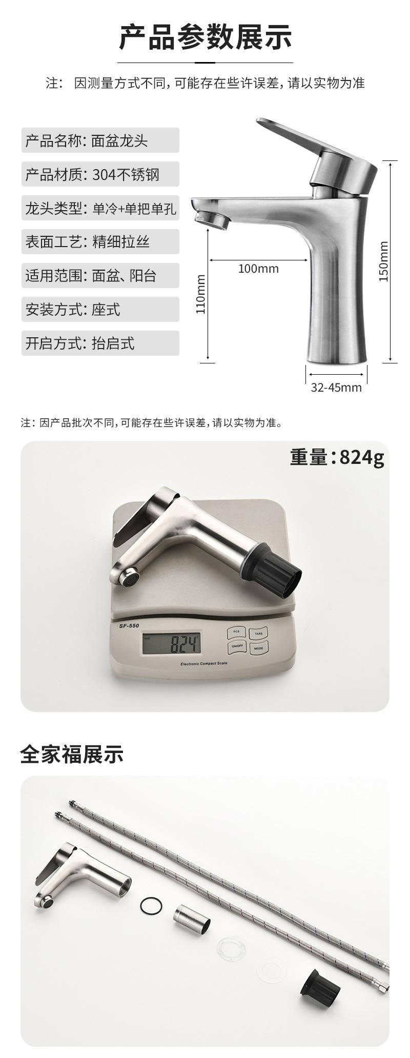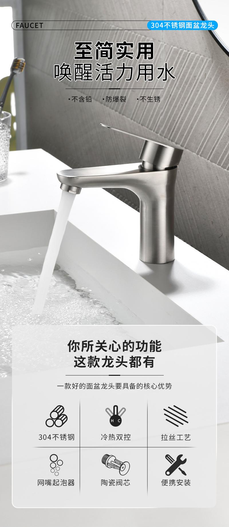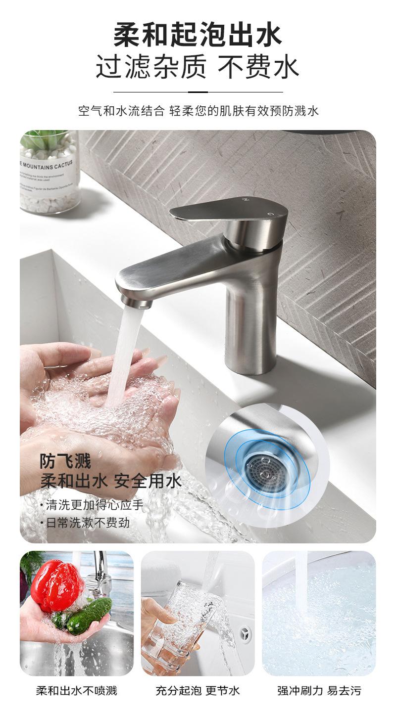 Grifo de lavabo de acero inoxidable 304 para baño, inodoro, lavabo de cintura pequeña, grifo de agua fría y caliente de un solo orificio