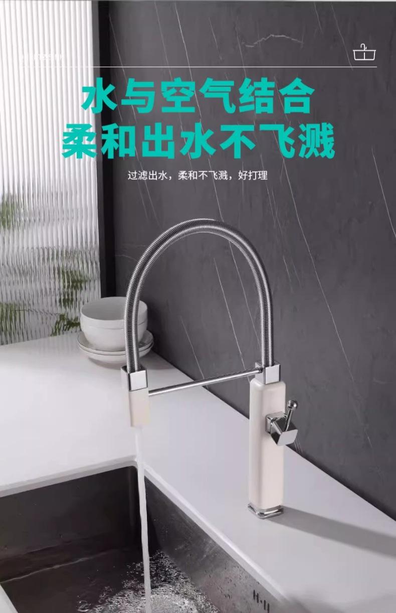 Grifo de Cocina Clásico Estilo Retro Kaiping Antiguo Extraíble Todo Cobre Giratorio Telescópico Grande de un Seno Sensación Elegante
