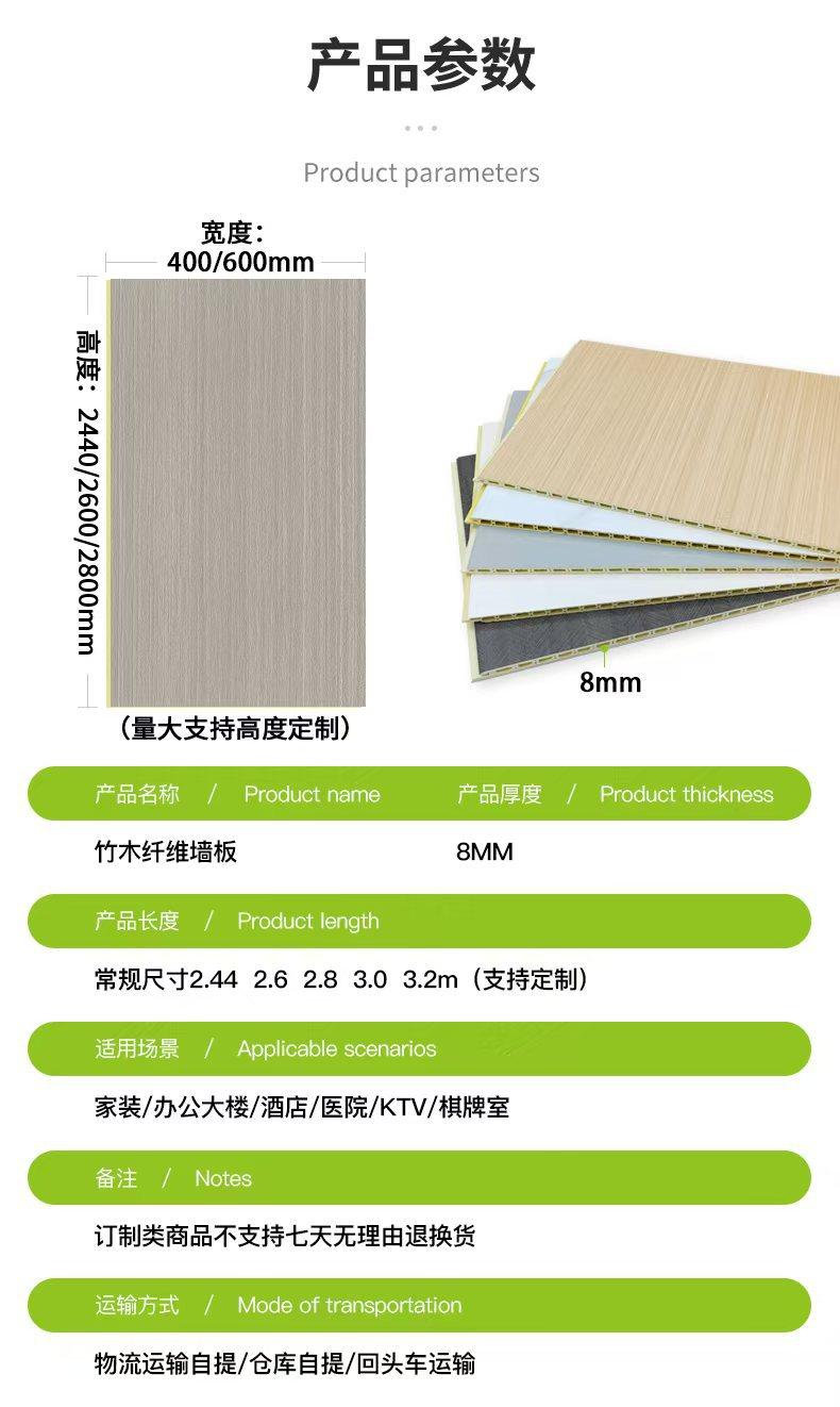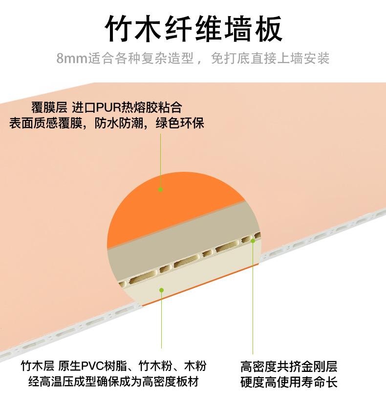 Panel de pared integrado de un solo orificio de tablero de fibra de madera de bambú 400/600, fondo decorativo, techo integrado de PVC, panel de pared de instalación rápida