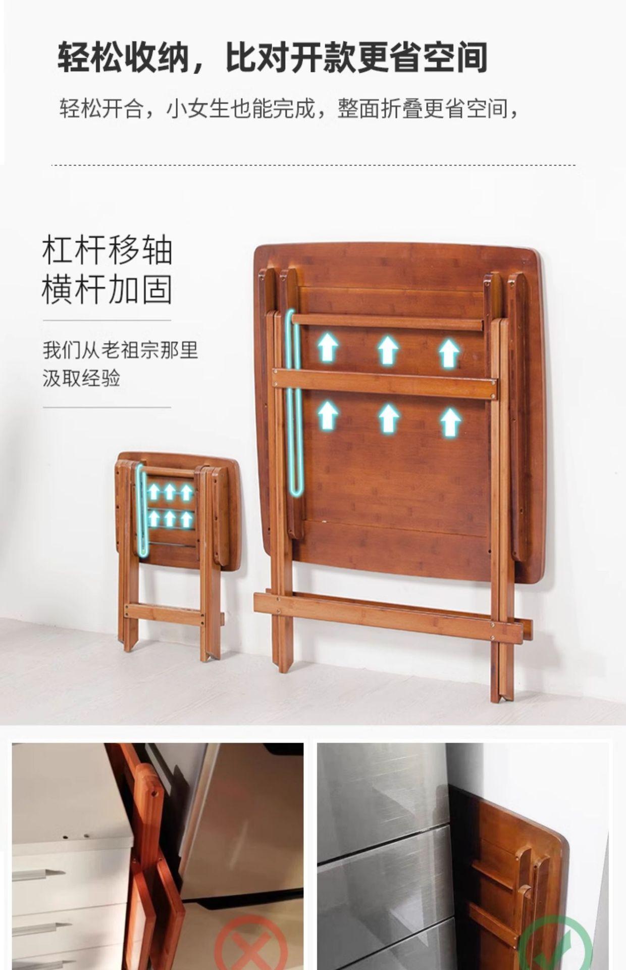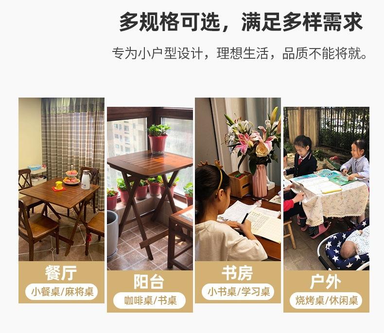 Mesa plegable cuadrada pequeña, mesa de comedor cuadrada de bambú de madera maciza, mesa plegable, mesa de comedor sencilla para el hogar, mesa plegable para balcón