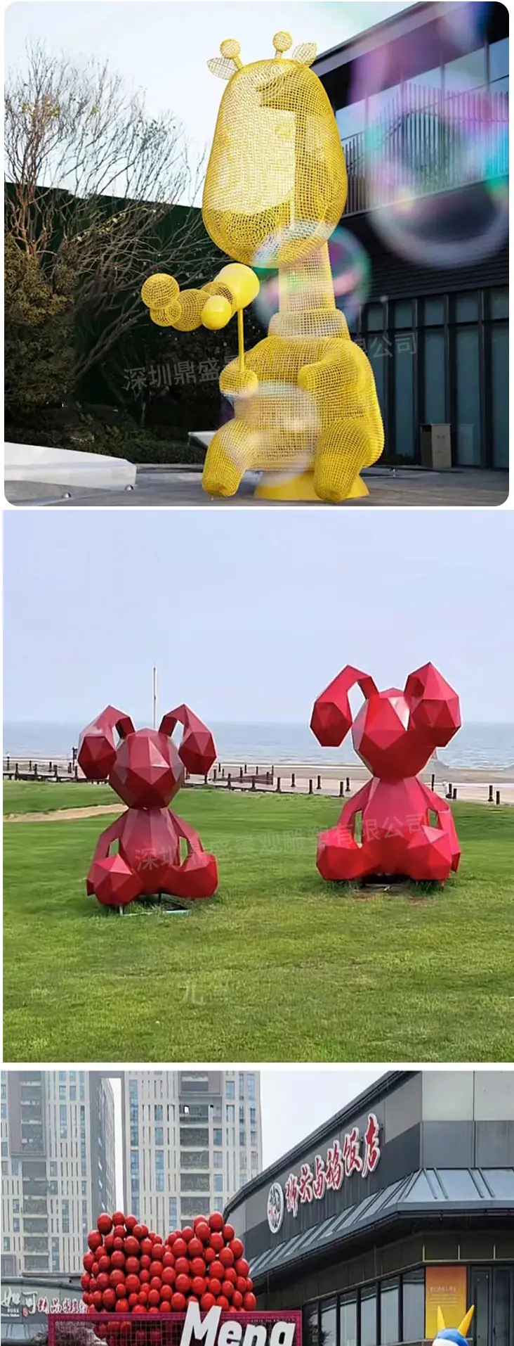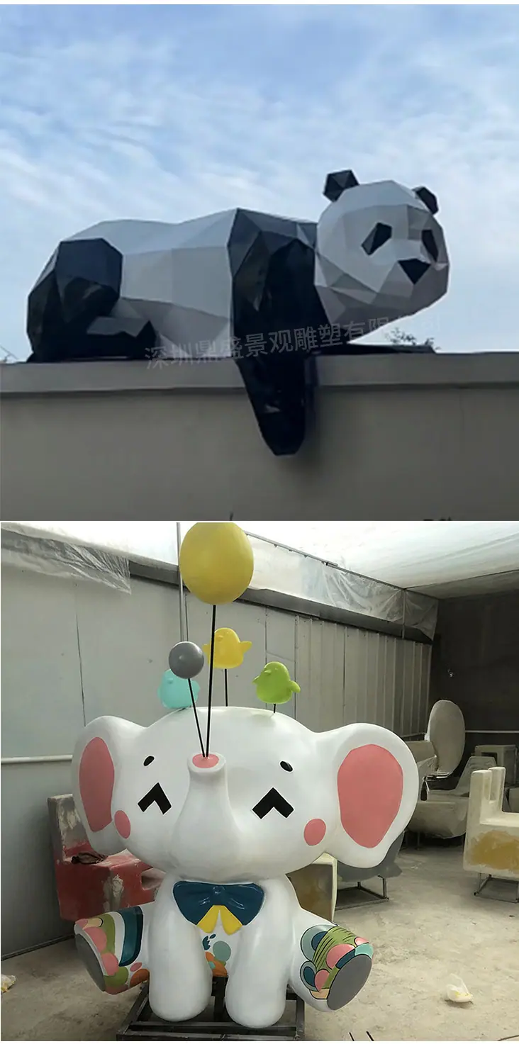 Compra Escultura de dibujos animados de acero de vidrio, pequeño elefante, centro comercial al aire libre, mascota de personaje grande, red, muñeca roja, imagen IP al por mayor en Joom.pro