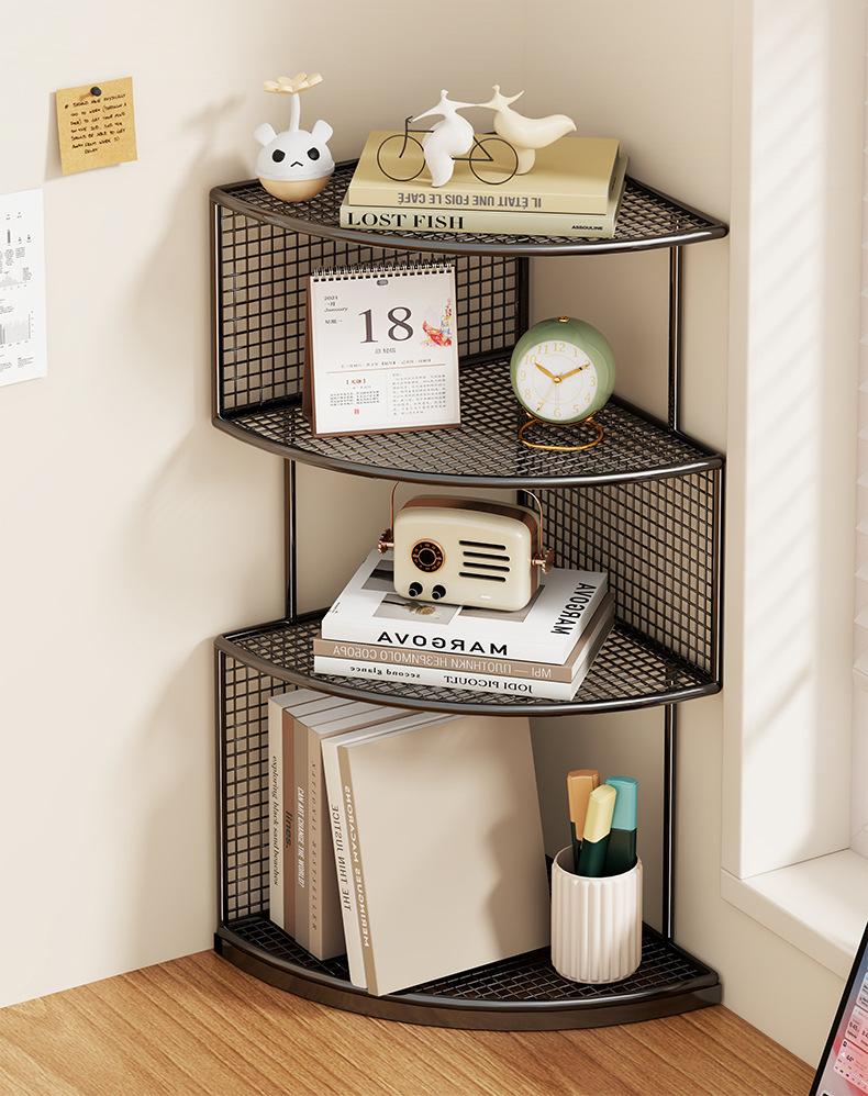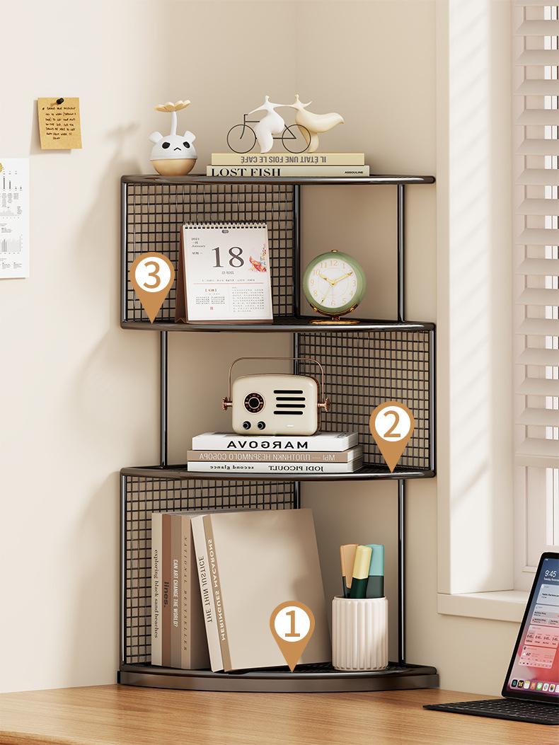 Estante de almacenamiento de esquina de escritorio Estantería triangular de escritorio Estación de escritorio Estante de almacenamiento de esquina pequeño de múltiples capas en forma de abanico