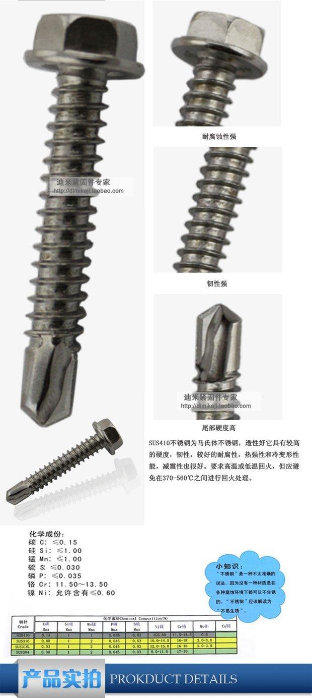 Venta al por mayor 410 tornillo de cola de milano de acero inoxidable externo con hexágono interior, tornillo autorroscante de acero de color, clavo de cola de milano M5.5 6.3