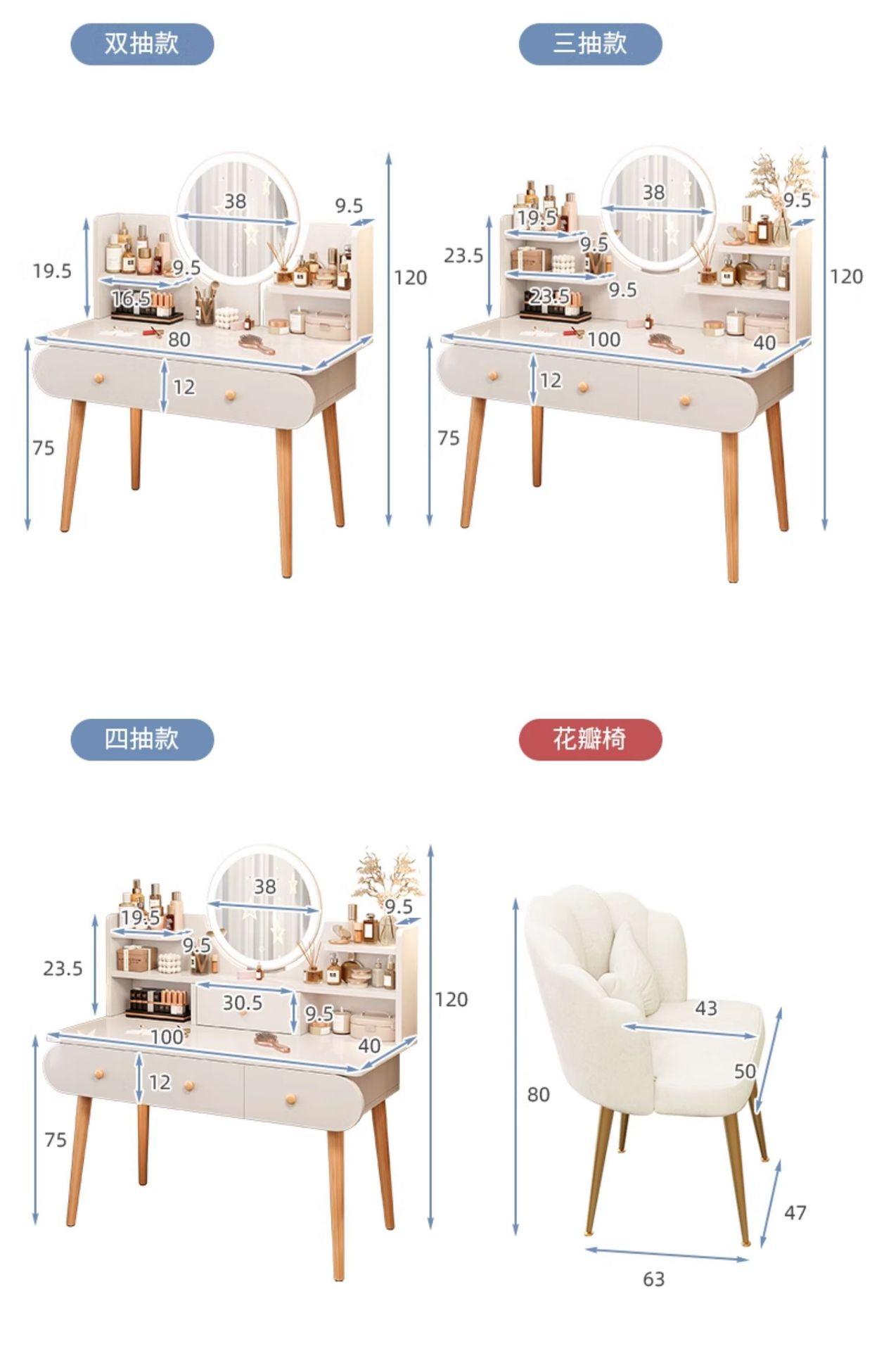 [upgraded ecological board] [double drawers + led lights] 80cm warm white + petal chair
