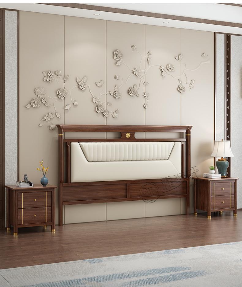 Cabecera de Estilo Chino de Nuevo Estilo con Acolchado Suave, Diseño Simple para Espacios Pequeños, Respaldo de Lujo Ligero, Cabecera de Madera Sólida Vendida por Separado