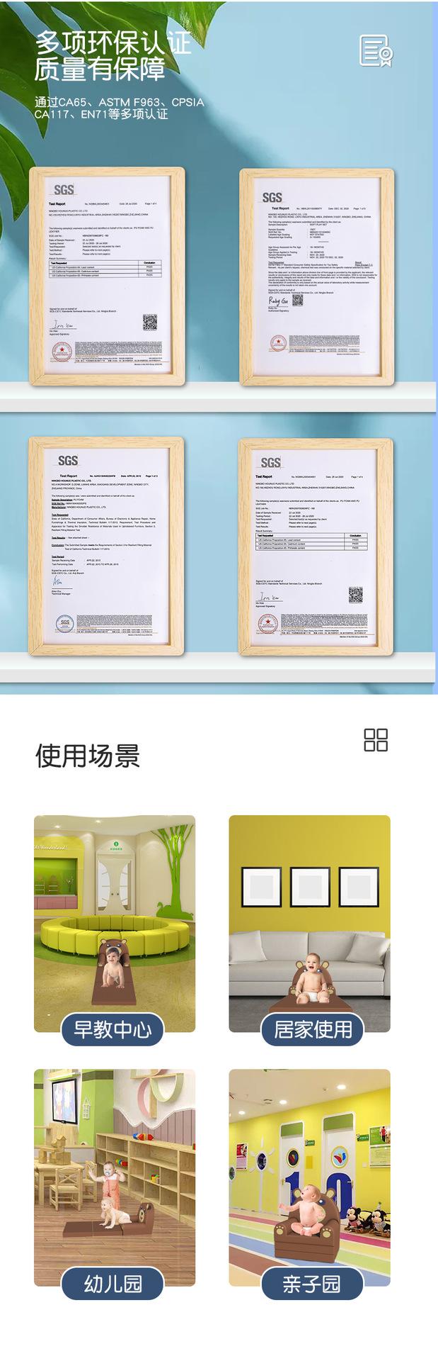 Todos los materiales utilizados en este tapete son no tóxicos. Y pasaron la prueba de la norma de seguridad EN71 y la prueba de retardante de llama CA117.