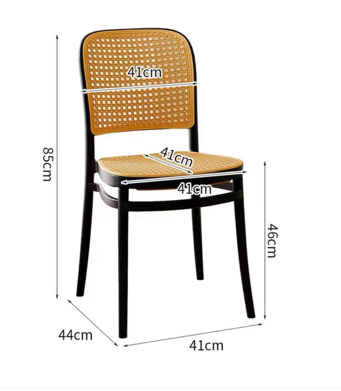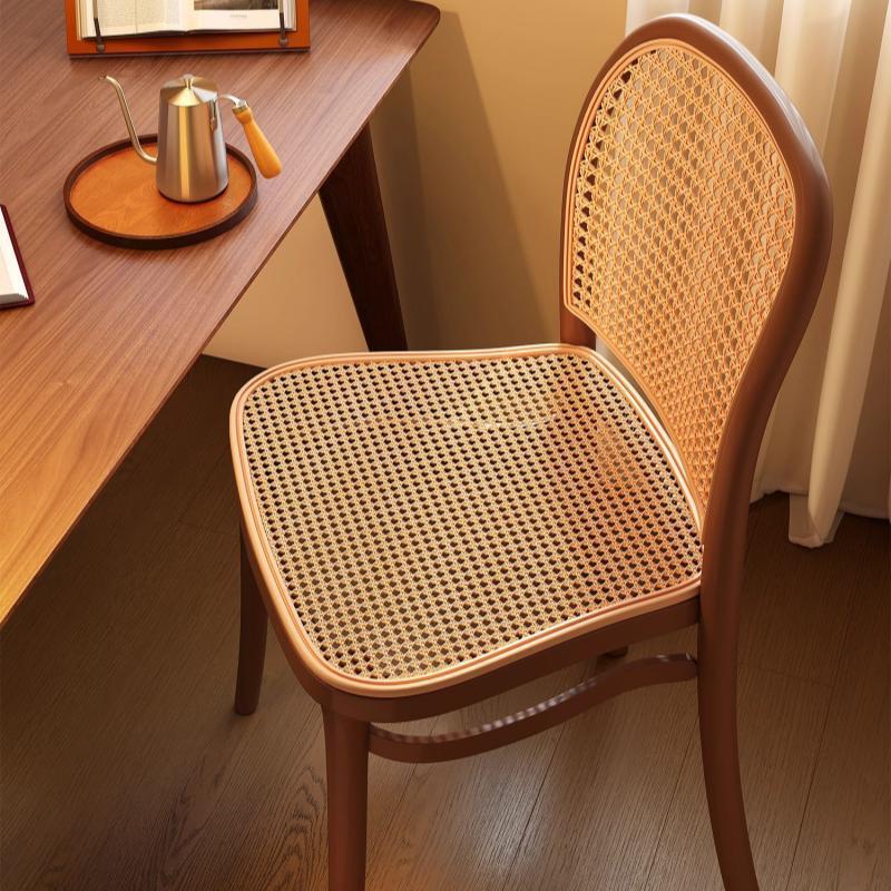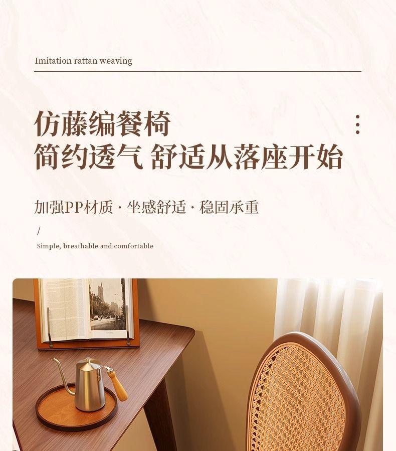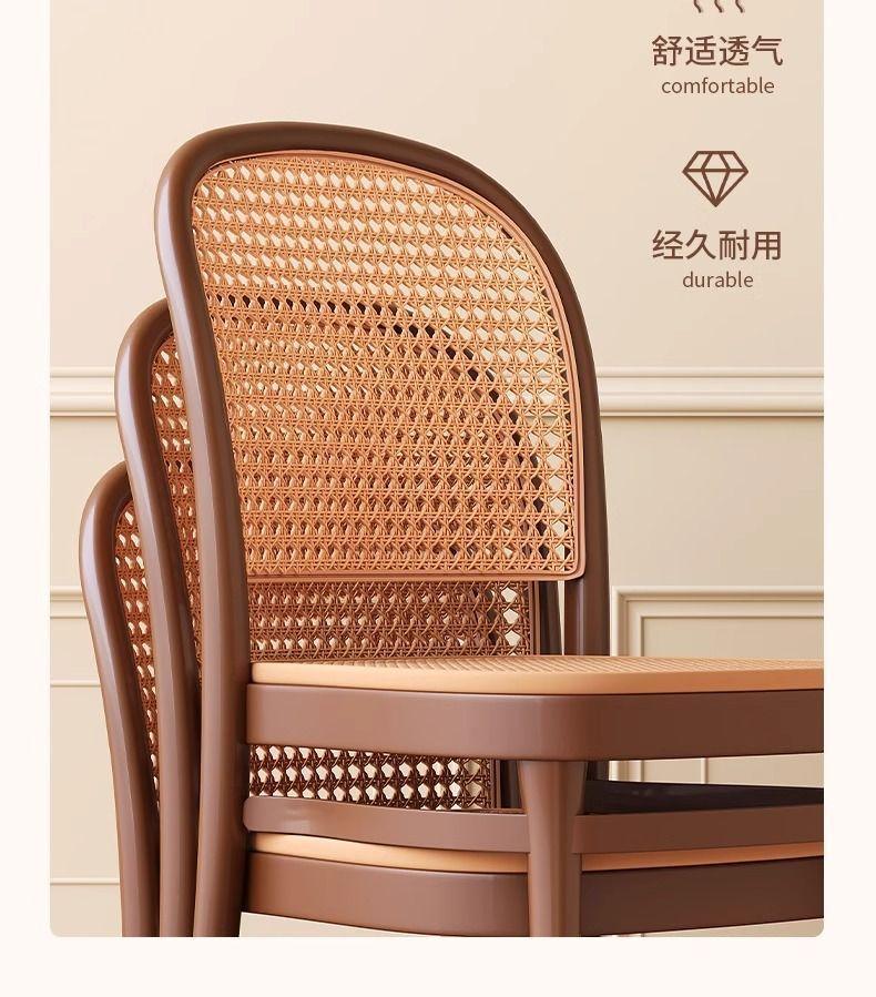 Silla de ratán de plástico de estilo nórdico con respaldo apilado, ideal para restaurantes, exteriores, hogares, internet, comedores y mesas de ocio.
