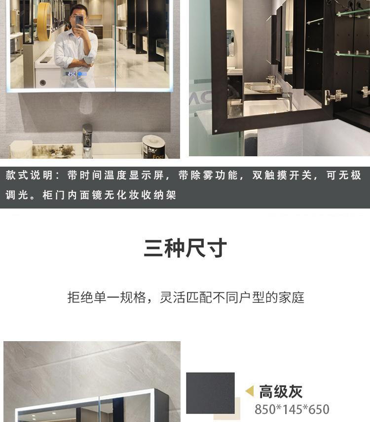 Gabinete de Espejo Montado en la Pared Aleación de Aluminio Belleza Inteligente Baño Espejo a Prueba de Humedad para Encima Almacenamiento de Baño Caja de Espejo Integrada No Estándar