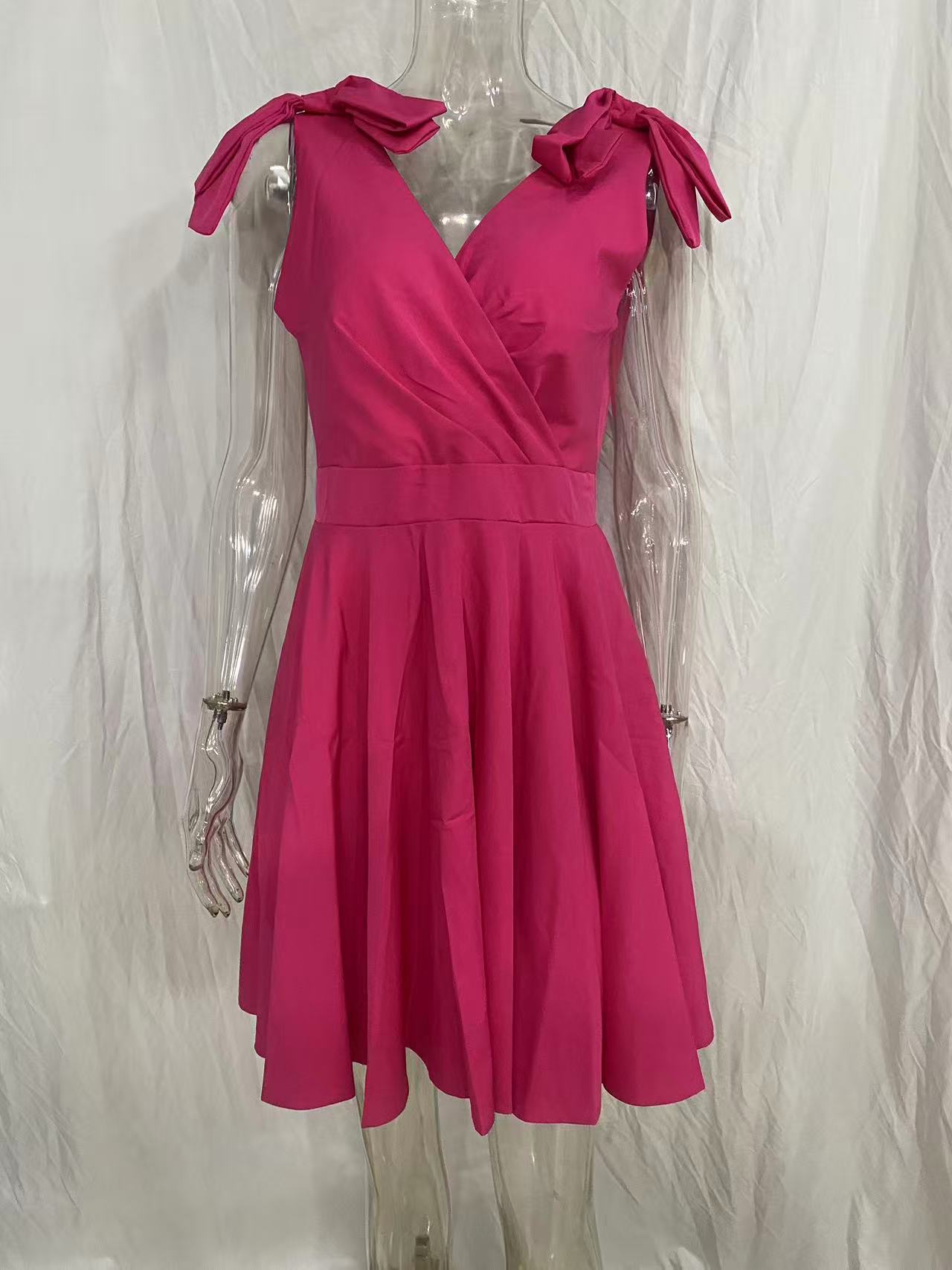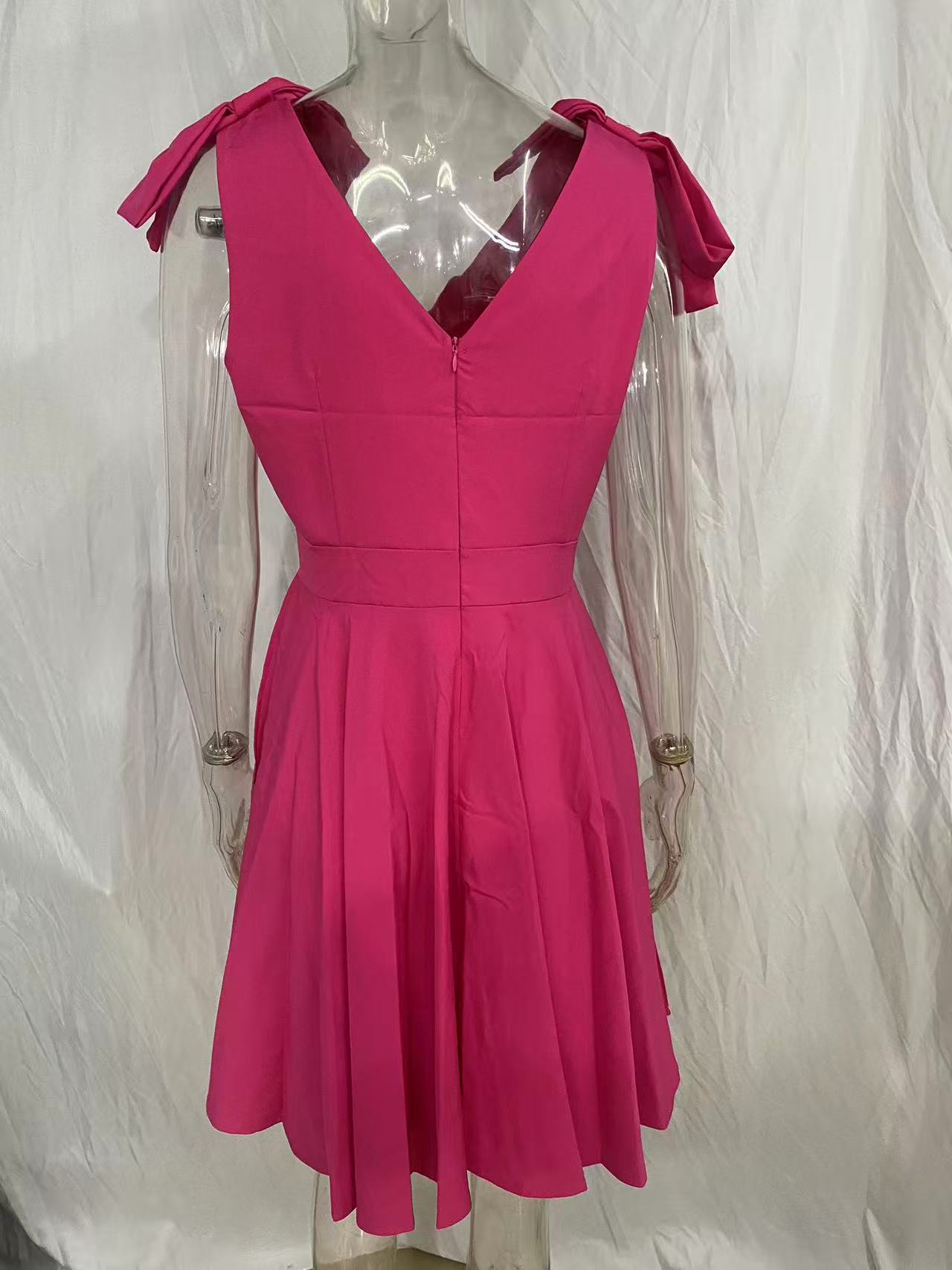 Vestido de Verano de Estación Independiente de Amazon 2024 Vestido Pequeño con Lazo y Cuello en V Profundo