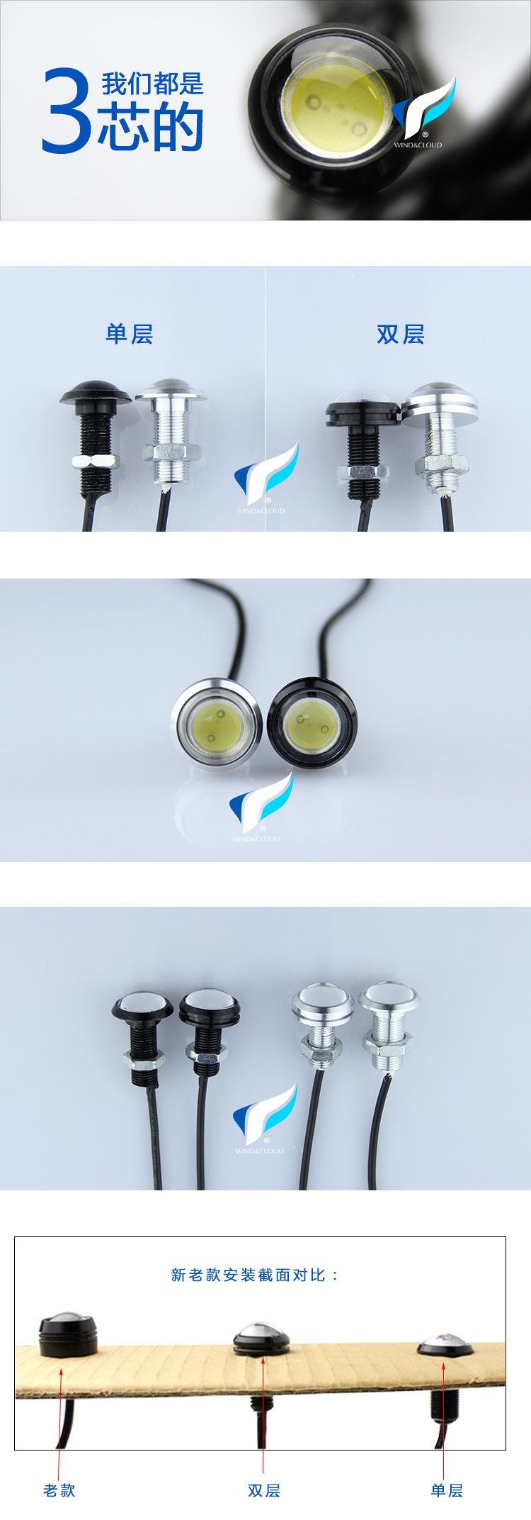 ¿Sigues usando luces ojo de águila ordinarias no impermeables y de corta duración? ¿Te preocupa que las luces ojo de águila adhesivas de doble cara 3M sean robadas? ¿Se caerán durante el lavado del coche? De acuerdo con las sugerencias y necesidades de nuestros clientes, hemos desarrollado recientemente luces LED ojo de águila ultradelgadas de 9W de alta potencia, alto brillo, larga duración, impermeables, equipadas con tornillos (se entregarán tornillos de instalación), que son fáciles de instalar y te permiten retroceder de forma segura por la noche. Por supuesto, también se pueden usar como luces de contraataque para lidiar con conductores de baja calidad detrás de ti que te deslumbran con sus luces altas.