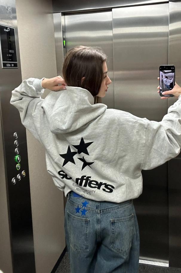 Sudadera con capucha informal y holgada con estampado de letras de estrellas para hombre y mujer, estilo europeo y americano, otoño e invierno de 2024