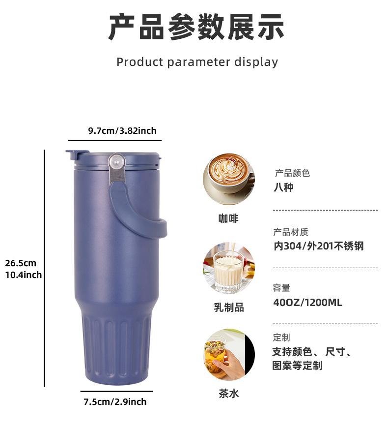 Vaso para Coche de 40oz Acero Inoxidable Vaso para Doble Bebida Vaso Aislado Vaso Portátil Vaso para Hielo para Coche Anticaída para Exterior Regalo Personalizado