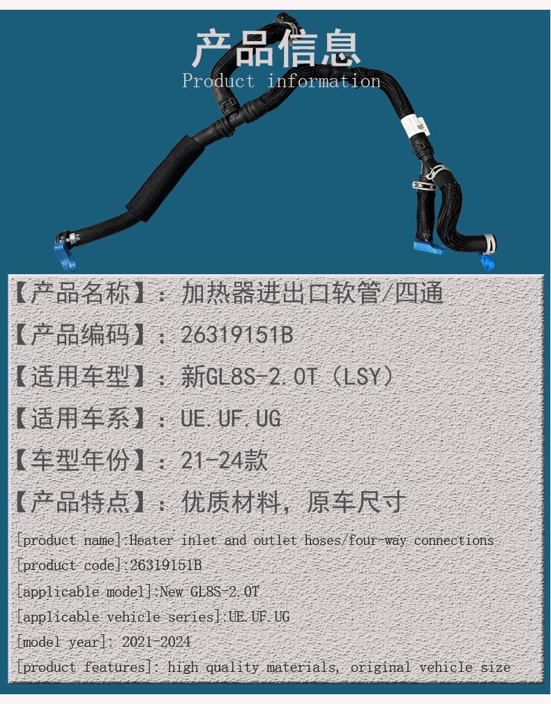 Adecuado para el nuevo GM Buick GL8S2.0T, manguera de importación y exportación para calentador de automóvil, tubería de agua para calentador de tres y cuatro vías