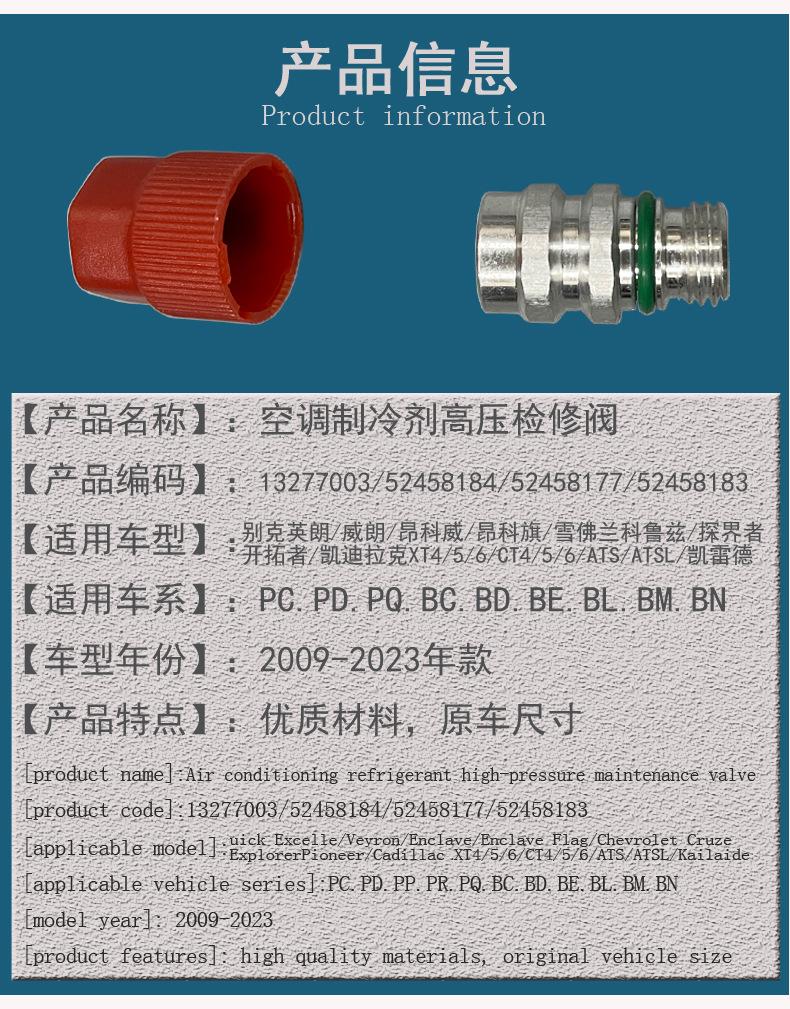 Adecuado para Buick Hideo Chevrolet Cruze Cadillac Boquilla de fluoruro Núcleo de válvula Tubo de aire acondicionado Válvula de mantenimiento de alta presión