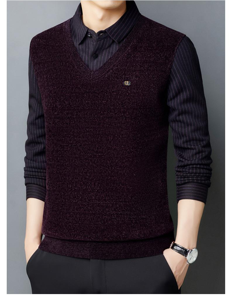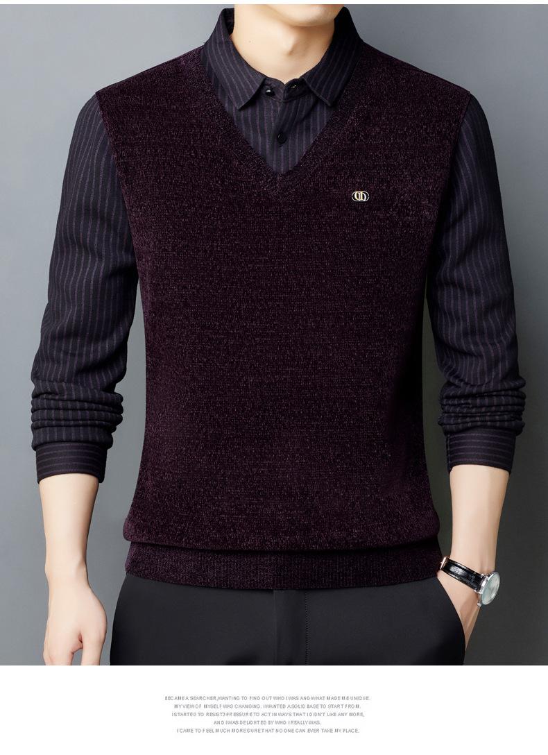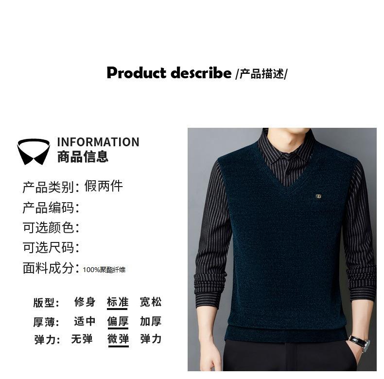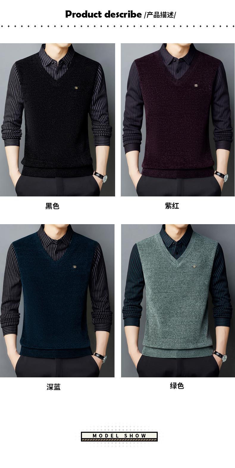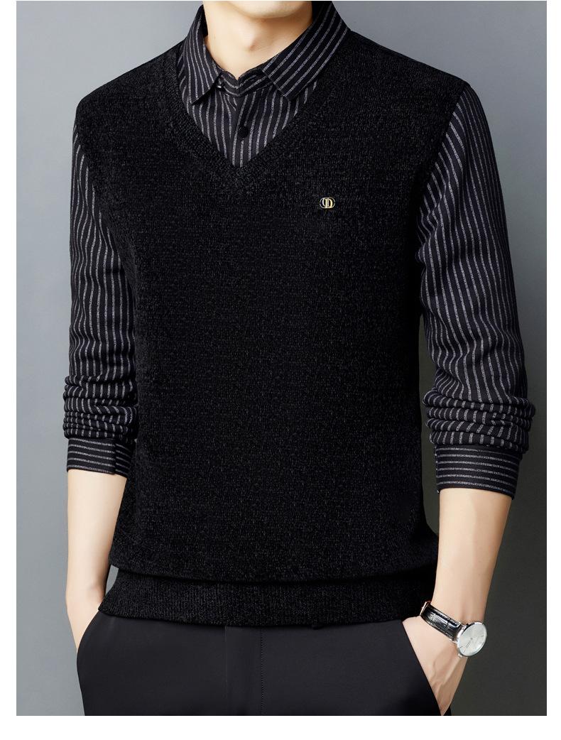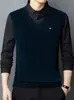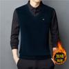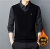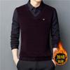 Suéter para Hombre Otoño e Invierno Tejido de Punto Falso de Dos Piezas Camisa de Cuello para Mediana Edad y Adulto Mayor Forrado de Felpa Engrosado Transfronterizo Cálido Camiseta Base