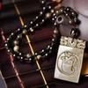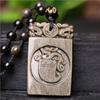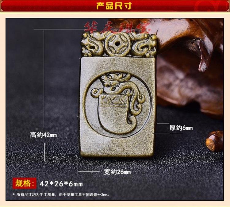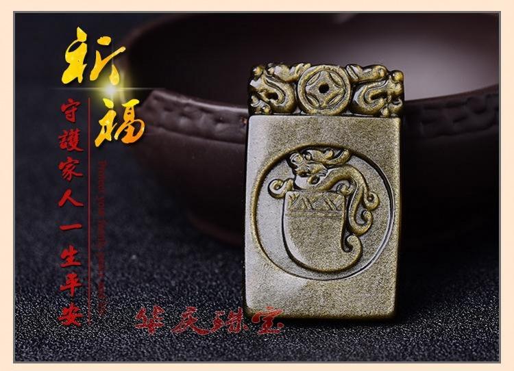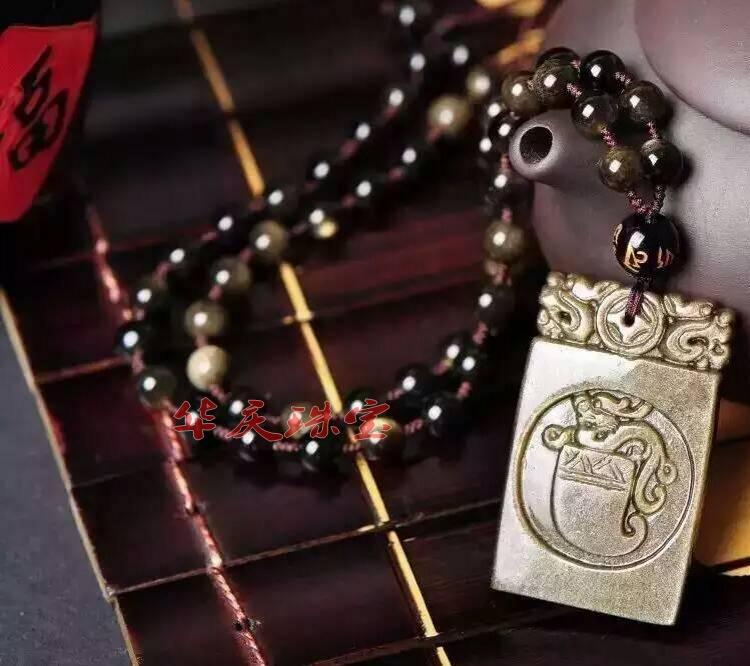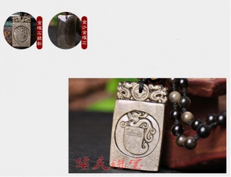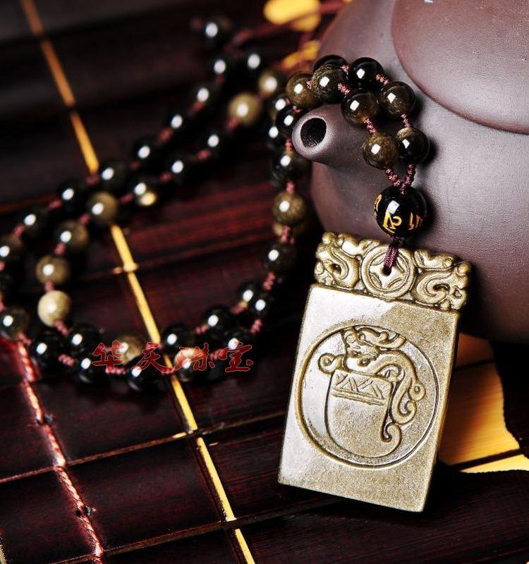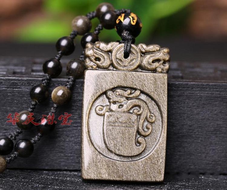 Colgante de obsidiana natural al por mayor de fábrica, collar cuadrado para hombres y mujeres, obsidiana dorada, doble etiqueta valiente, joyería